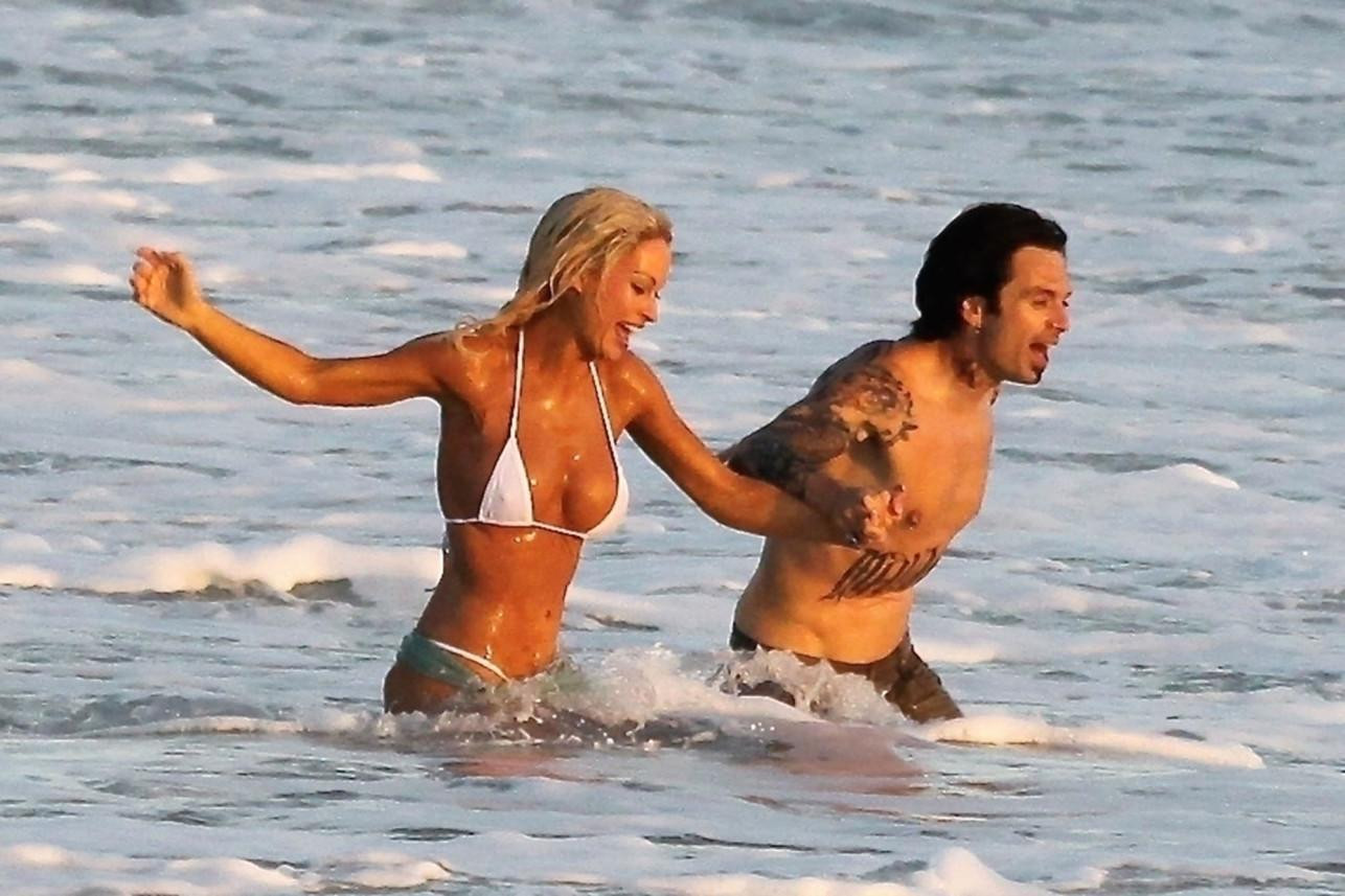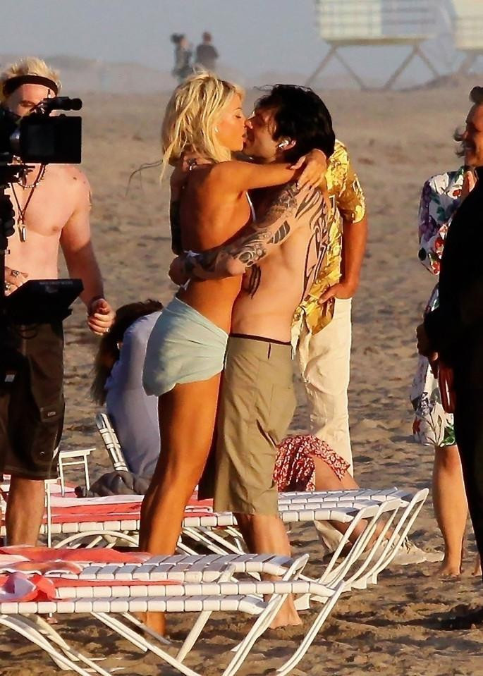 Mới đây, cặp đôi màn ảnh được nhìn thấy tái hiện đám cưới ồn ào một thời của Anderson và Lee trên bãi biển. Lily mặc bikini màu trắng bé xíu, với chiếc khăn mỏng buộc ngang hông, khoe thân hình rám nắng quyến rũ. Trong khi đó, Sebastian mặc quần lửng, để trần thân trên, lộ hình xăm kín lưng và hai cánh tay.