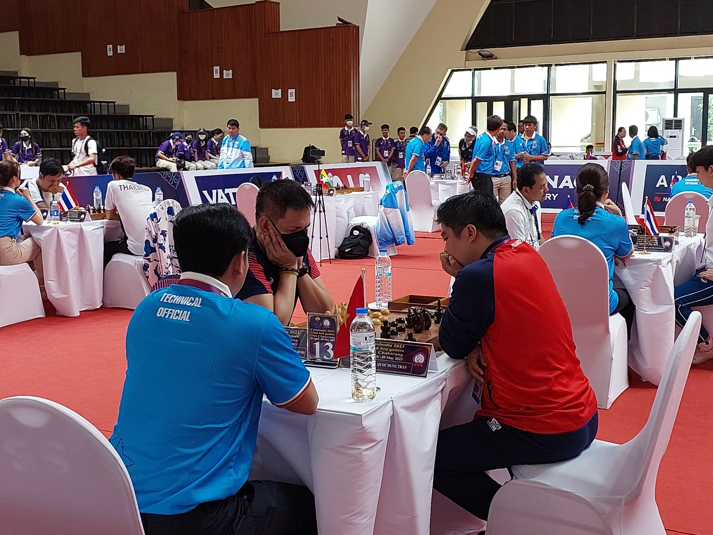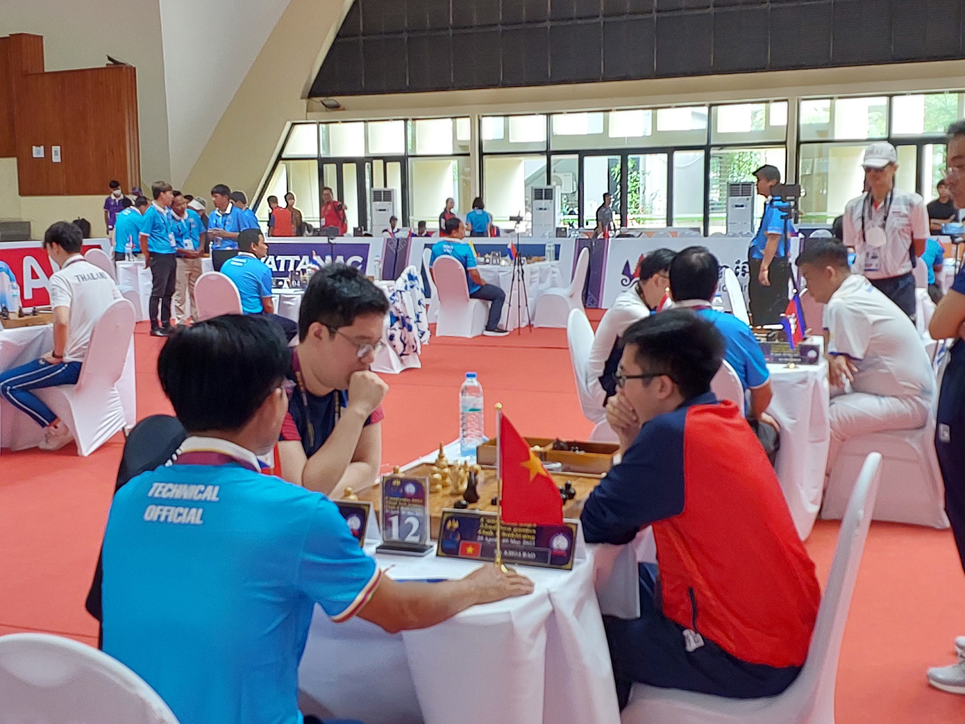 Trong sáng 29/4, ĐT Việt Nam tham gia hai nội dung cờ chớp và cờ tiêu chuẩn của môn Cờ ốc, Ouk Chaktrang. Hai kỳ thủ giành chiến thắng ở nội dung cờ chớp là Hoàng Nam Thắng và Nguyễn Quang Trung.