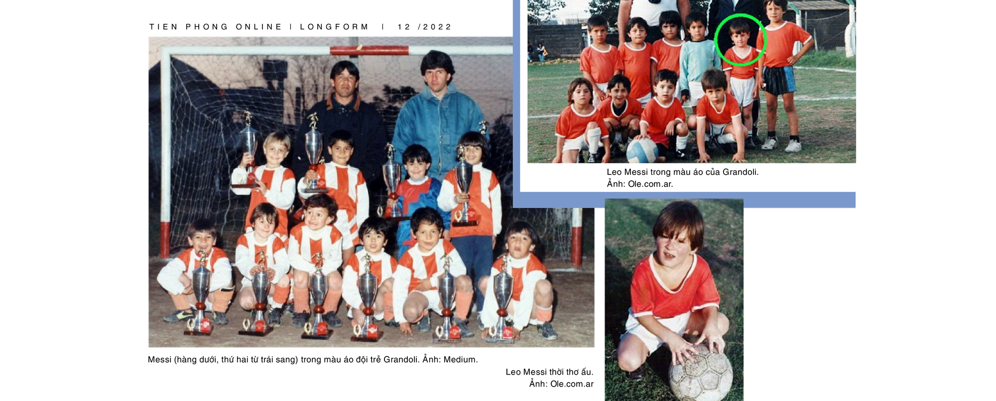 Những người ở Grandoli, đội bóng địa phương Messi chơi từ năm 4 tuổi, hay Học viện Newell's Old Boys, nơi Messi gia nhập năm lên 8, vẫn nhớ về hình ảnh “cậu nhóc tí hon chỉ đứng đến đầu gối nhưng chơi bóng như một người khổng lồ”. Họ cũng cười về các trận đấu thường bị rút ngắn vì Messi. Có một luật bất thành văn ở đây, rằng khi một đội dẫn trước tới 7 bàn thì trọng tài sẽ cho kết thúc sớm. Đội của Messi luôn ghi được 7 bàn.