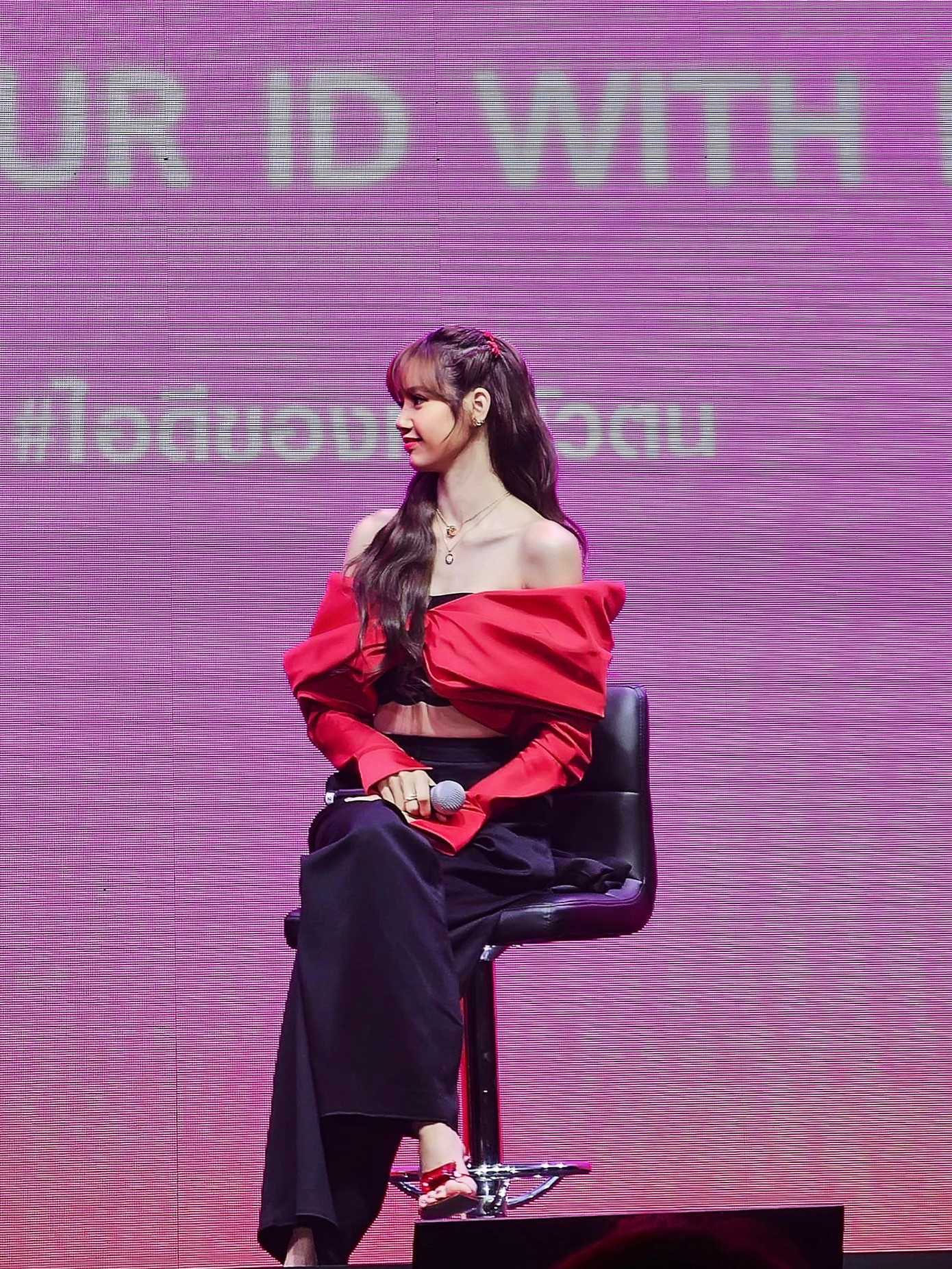 Tại buổi fan meeting mới đây, “em út vàng” của BLACKPINK đã nhận được sự tán dương không ngớt từ hàng trăm khán giả bên dưới. Không chỉ thu hút nhờ diện mạo xinh đẹp và thần thái mạnh mẽ, bộ trang phục mà Lisa chọn mặc cũng được khen ngợi nhiệt tình bởi thể hiện rõ cá tính của nữ ca sĩ. Ê kíp của người đẹp đã chọn một mẫu áo quây đỏ rực từ nhà thiết kế Công Trí, kết hợp cùng quần đen ống đứng theo phong cách menswear.