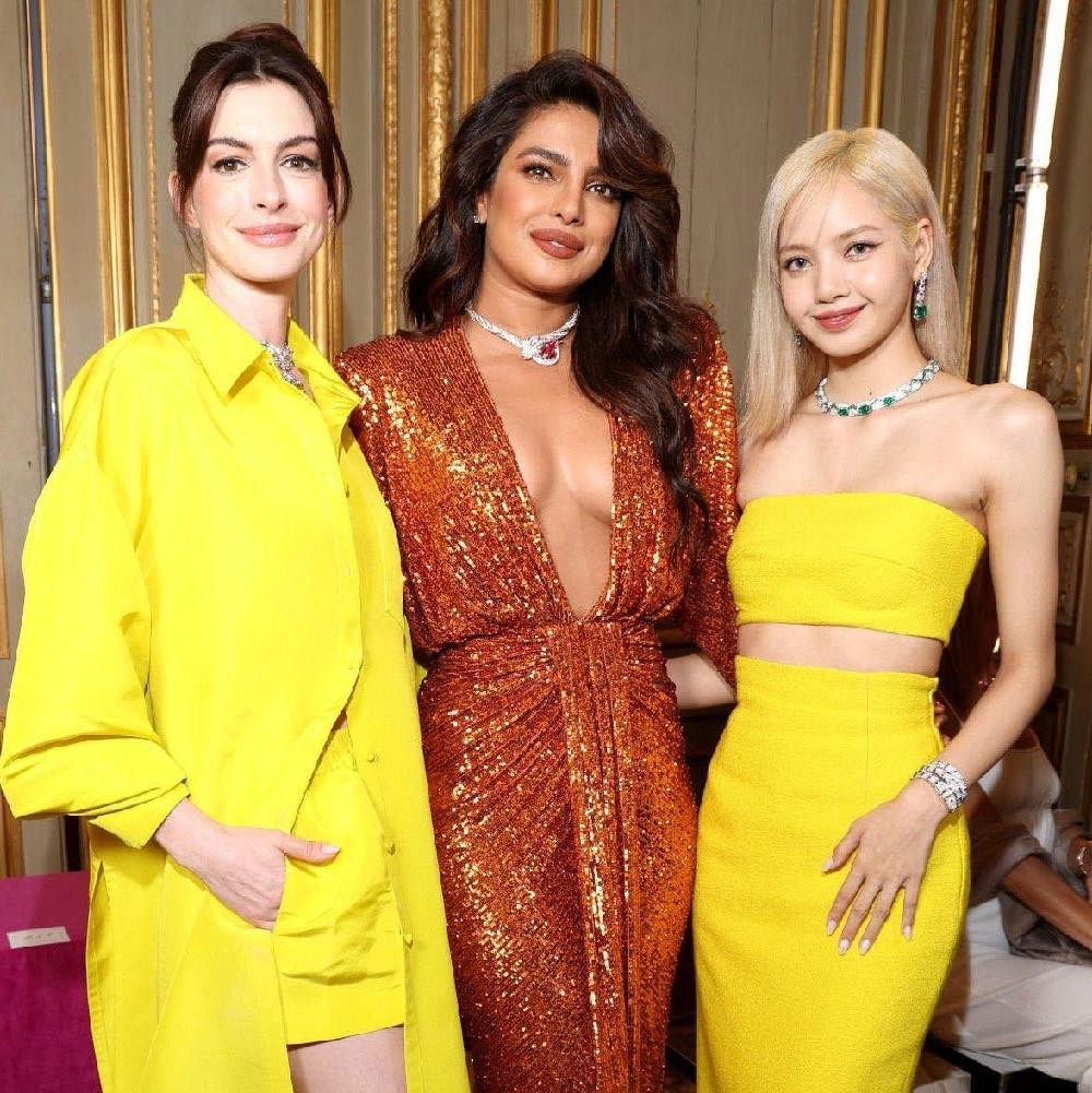 Tham dự triển lãm trang sức và đồng hồ cao cấp của BVLGARI tại Paris, Pháp, Lisa BLACKPINK có dịp hội ngộ hai người đẹp đình đám khác là nữ minh tinh Anne Hathaway và Hoa hậu đẹp nhất lịch sử Priyanka Chopra.