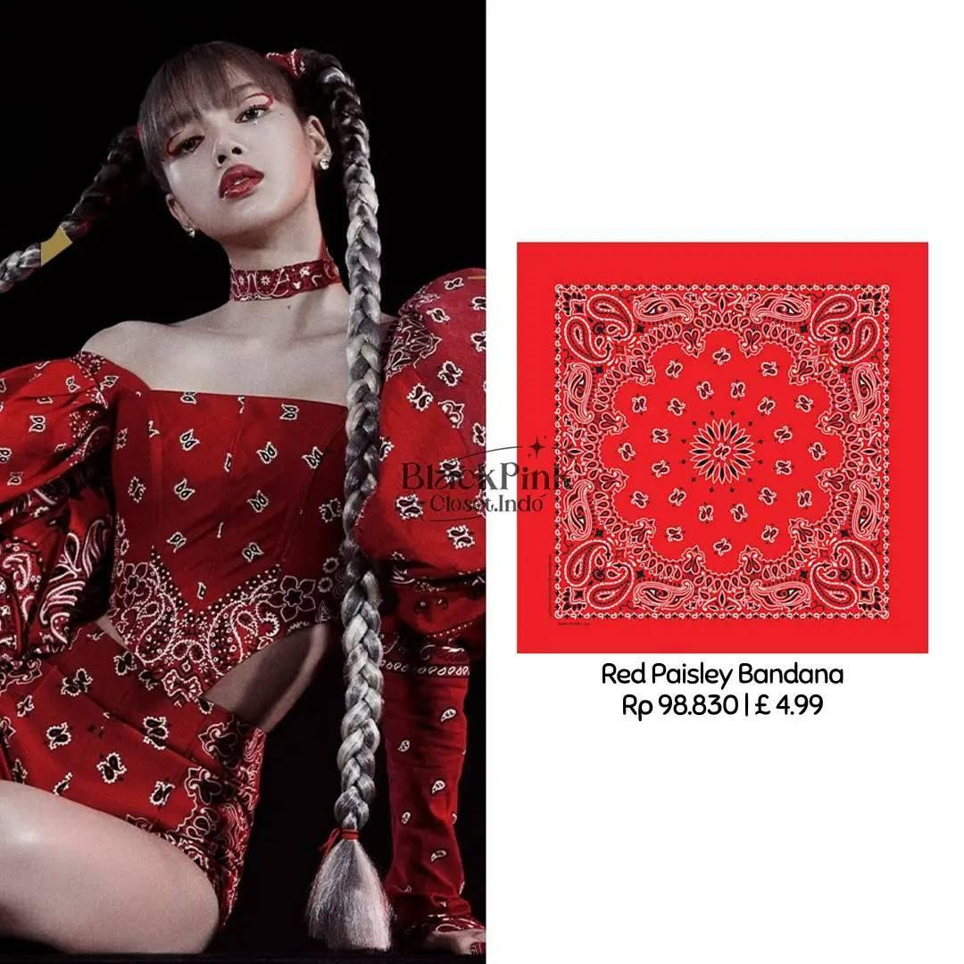 Nếu như lần đầu, set trang phục là sản phẩm nằm trong kho lưu trữ của Thierry Mugler và gần như là vô giá, thì ở lần 2, áo và quần soóc của Lisa lại được may hoàn toàn từ những chiếc khăn bandana có giá chỉ... 5 bảng (khoảng hơn 150 ngàn đồng) mỗi chiếc.