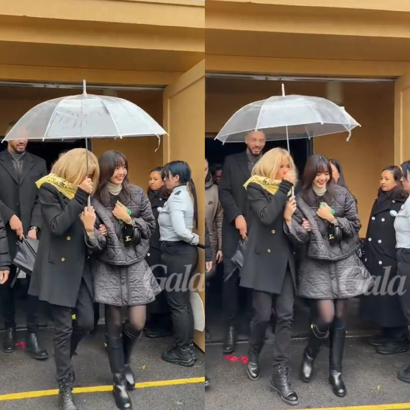 Mới đây nhất, Lisa gây bão với bức ảnh vô cùng thân thiết bên với Đệ nhất phu nhân Pháp Brigitte Macron. Em út của BLACKPINK được đích thân phu nhân quyền lực nhất nước Pháp che ô giúp trước cơn mưa nặng hạt. Tuy diện set đồ đen toàn tập nhưng Lisa vẫn tỏa sáng với nụ cười rạng rỡ của mình.