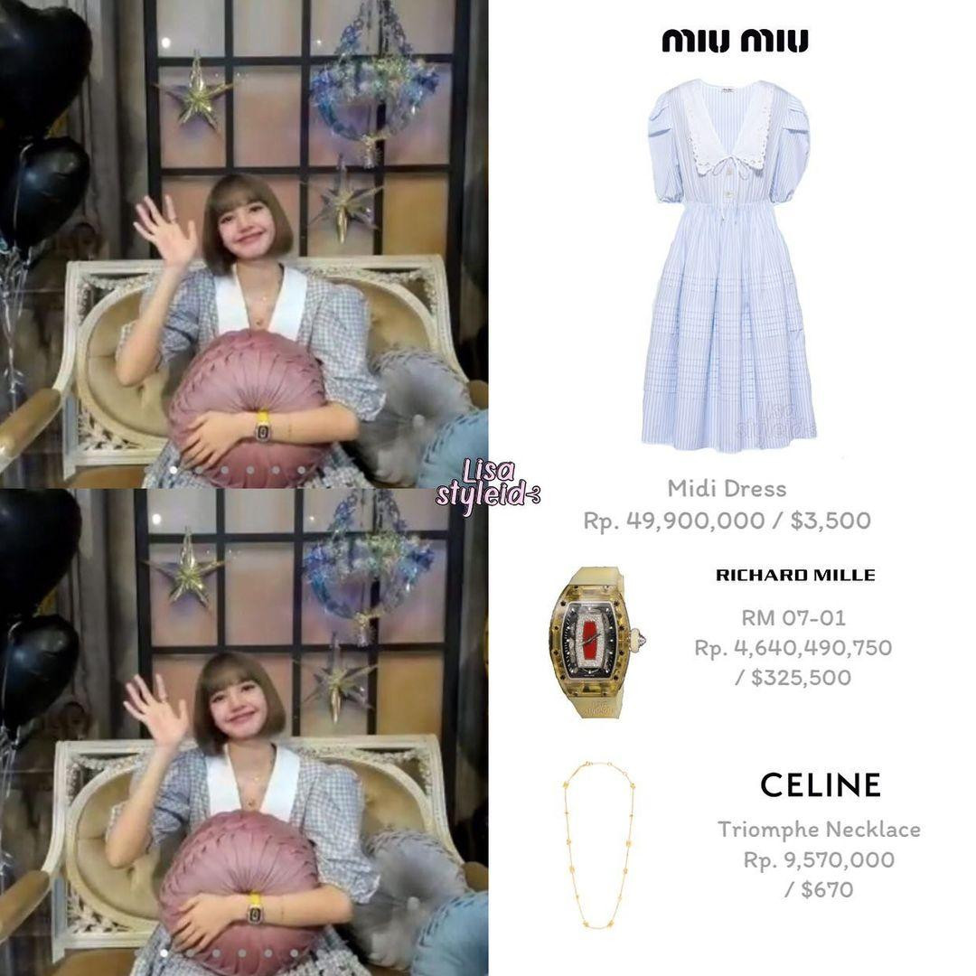 Thời gian gần đây, người hâm mộ nhận ra Lisa rất chăm mặc đồ của Miu Miu. Khi biểu diễn bài LALISA hay livestream trò chuyện với các fan, Lisa đều diện các thiết kế mới của Miu Miu. Đặc biệt là set đồ diễn Lisa mặc trong sân khấu quảng bá cuối cùng cho LALISA là nguyên một cây đồ Miu Miu.