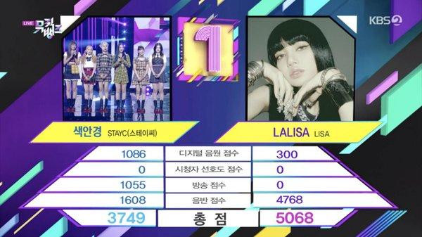 Mặc dù gây tranh cãi bởi thứ hạng nhạc số nội địa “lẹt đẹt”, Lisa vẫn thành công giành được hạng nhất đầu tiên tại KBS Music Bank. Người hâm mộ nữ idol đang nỗ lực để giúp LALISA có thêm nhiều chiến thắng âm nhạc tiếp theo trong những tuần tới.