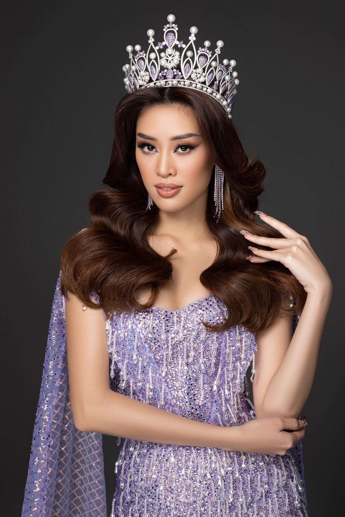 Không khó để nhận ra chiếc vương miện của Khánh Vân cũng đính rất nhiều đá quý màu tím, cho thấy 'nàng Hậu' đã chủ đích chọn váy dạ hội ăn ý với vương miện, tạo thành tổng thể vô cùng hài hòa.
