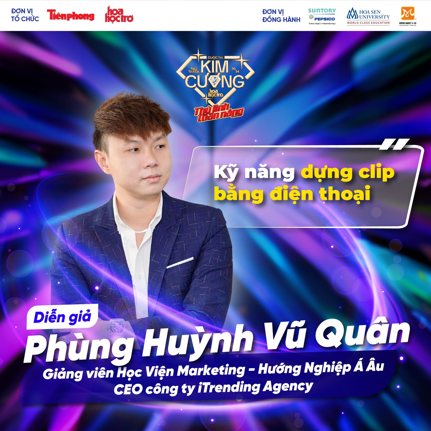 Các thí sinh còn được học kỹ năng quay dựng clip bằng điện thoại do anh Phùng Huỳnh Vũ Quân (Giảng viên Hướng Nghiệp Á Âu) hiện đang là Giám đốc điều hành công ty iTrending Agency đứng lớp. Với chủ đề “Short video: short sao cho hot”, teen sẽ trở thành nhà sáng tạo nội dung thần sầu với những video “nét căng”. Sau phần lý thuyết, các đội sẽ được thực chiến ngay những kỹ năng đã học thông qua bài tập do diễn giả trực tiếp đưa ra cùng những phần quà chất lượng.
