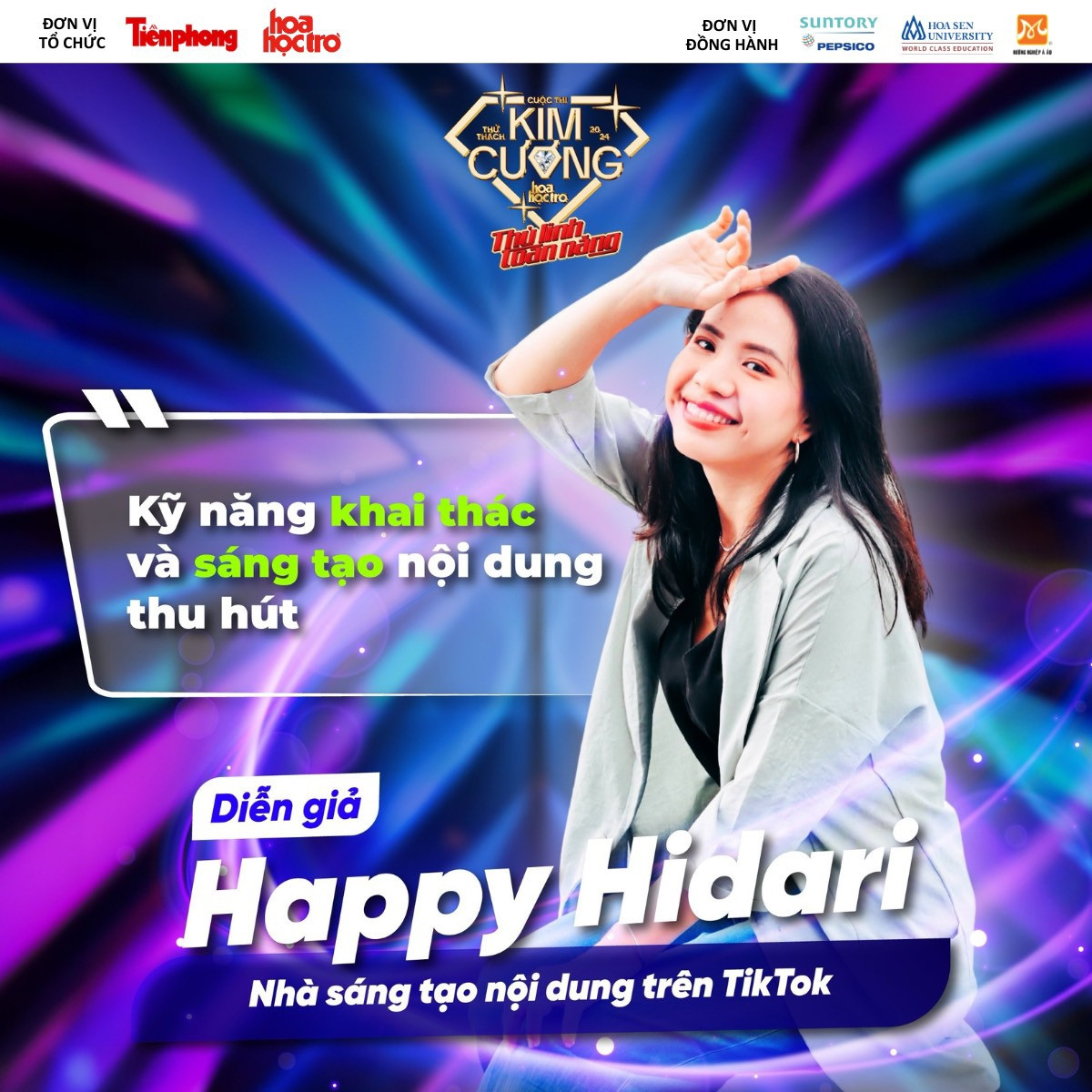 Nổi tiếng từ các video triệu view về các chủ đề bullet journal, tips học tập và vẽ tranh đáng yêu, chị Happy Hidari (Huỳnh Dạ Lý) đến để chia sẻ “bí kíp gia truyền” tạo nên các nội dung siêu “dính”. Nói nhỏ với bạn, chị Hidari cũng chính là người đạt Grand Prize (Giải Nhất) Cống hiến cho mảng Nội dung #Gocsangtao #LearnOnTikTok năm 2022, Top 10 TikTok Master 2022 bảng #LearnOnTikTok.