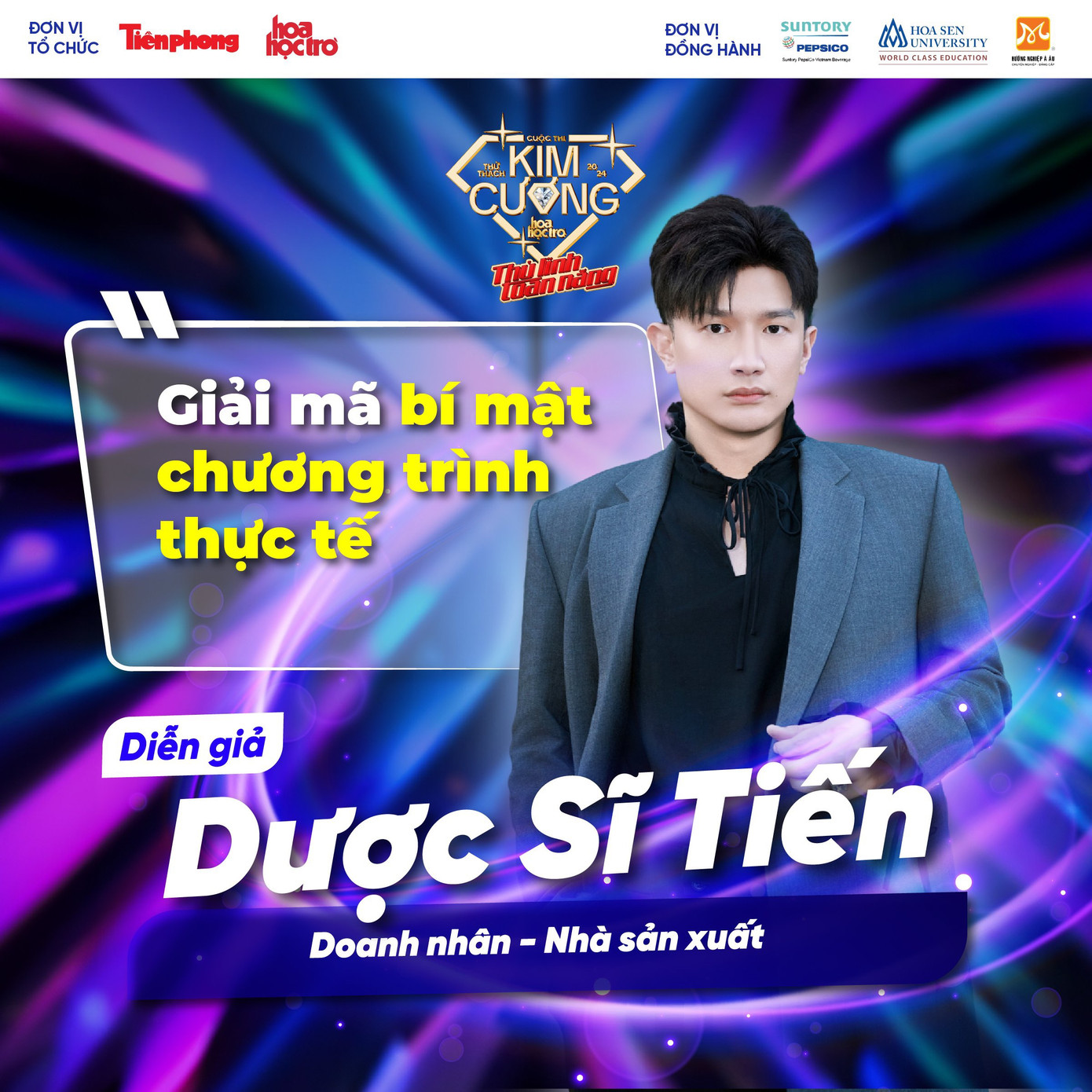 Kết buổi học cuối cùng tại Thử Thách Kim Cương, các team sẽ được lĩnh hội kiến thức từ Dược sĩ Tiến - nhà sản xuất toàn năng đứng sau nhiều chương trình nổi tiếng như The New Mentor, Miss International Queen Vietnam 2023, The Shoppertainer và Trò chuyện với tương lai. Anh còn là founder thương hiệu chăm sóc da nổi tiếng DrCeutics được nhiều bạn trẻ review và săn lùng.