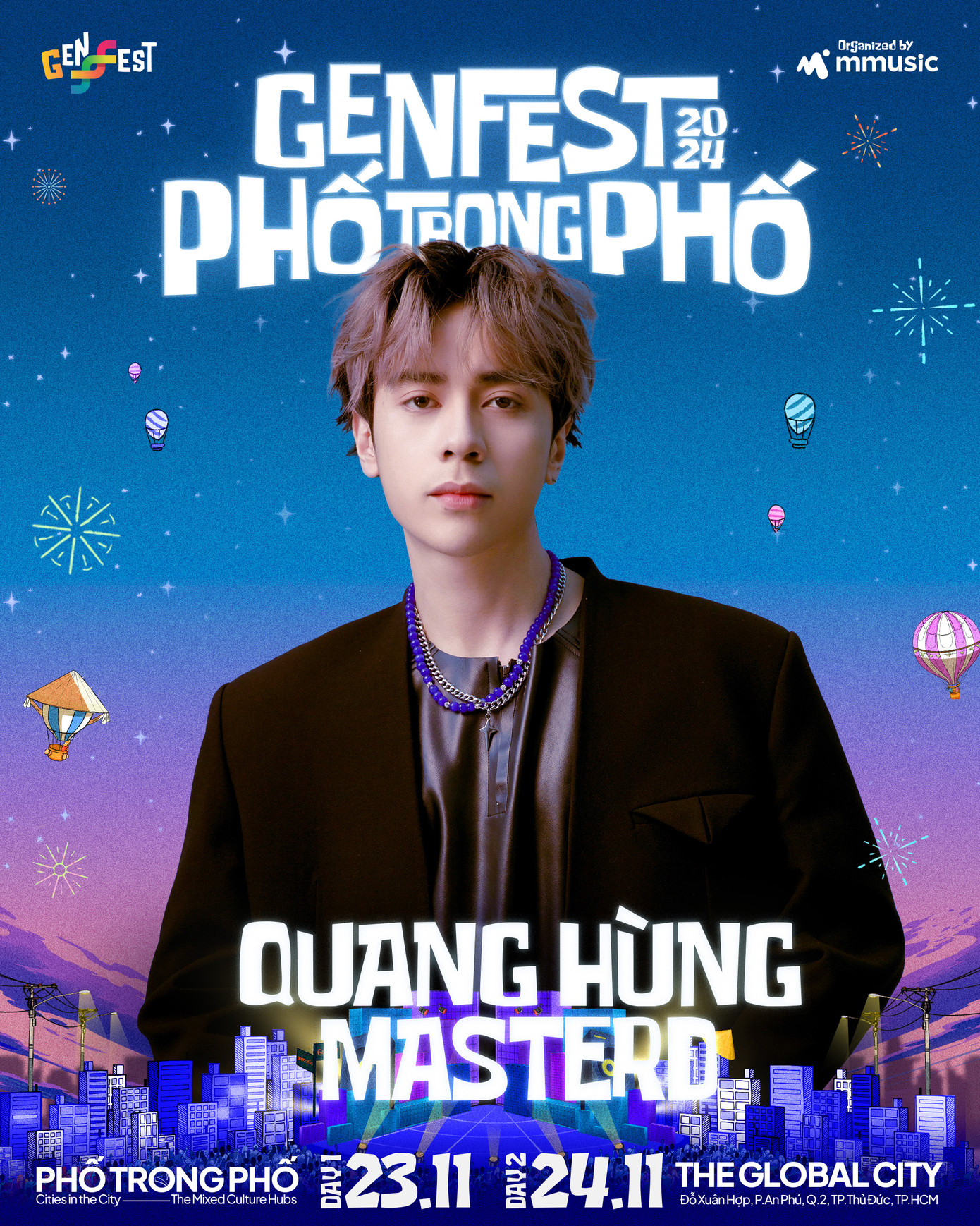 Quang Hùng MasterD - “con cưng” của làng nhạc Thái Lan có phong cách âm nhạc bắt tai, với loạt bản 'hit' nghe là muốn nhún nhảy như Đừng khóc một mình, Dễ đến dễ đi, Thủy triều. Vừa bước ra từ chương trình Anh trai say hi, Quang Hùng MasterD thu hút các fan Việt bởi phong cách trình diễn tự tin, tràn đầy năng lượng. Lần đầu tiên tham gia GENfest, Quang Hùng MasterD tiết lộ: “Hùng sẽ mang đến một set diễn 45 phút với rất nhiều điều thú vị và bất ngờ trong đó”.