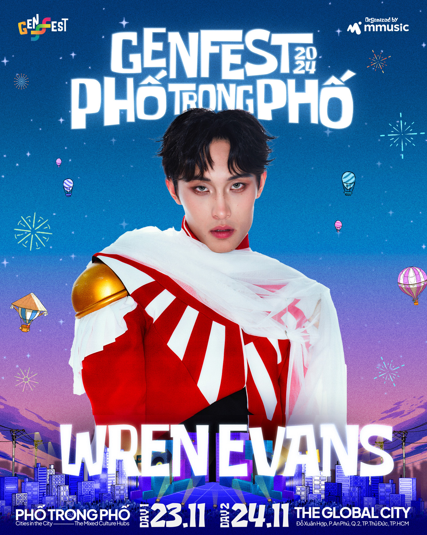 Wren Evans là một trong những gương mặt trẻ nổi bật nhất trong làng nhạc Việt Nam hiện nay. Với phong cách âm nhạc độc đáo anh đã nhanh chóng chiếm trọn cảm tình của khán giả qua các bản 'hit' đình đám như Thích em hơi nhiều, cơn đau, và Fever. Tại GENfest 2024, Wren Evans sẽ mang đến một set diễn bùng nổ, đưa khán giả vào một chuyến du hành âm nhạc đầy màu sắc và cảm xúc.