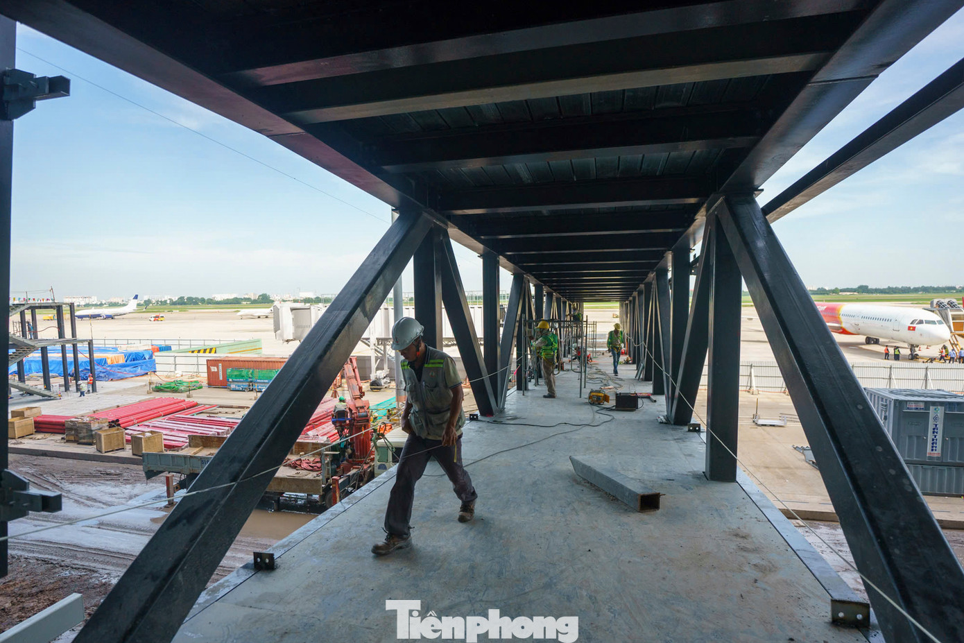 | Phần quan trọng nhất của công trình là kết cấu mái thép nặng 7.500 tấn đã xong trong tháng 9 sau 120 ngày thúc tiến độ. Đồng thời, phần mái nhôm lớp một của ga hành khách cũng đã xây dựng 42.000m2, đạt 100%. |