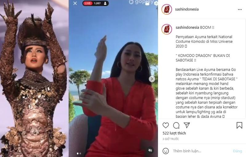 Cách đây ít giờ, đến lượt Hoa hậu Indonesia Ayu Maulida chính thức lên tiếng vì nhiều người cho rằng cô chính là nạn nhân bị phá hỏng trang phục dân tộc, vì set đồ của cô bị rách một miếng không nhỏ ở phần cùi chỏ. Ayu Maulida khẳng định cô không phải là người bị chơi xấu tại Miss Univese, và nói rõ thiết kế ban đầu của bộ trang phục là như vậy, để cô có thể co gập tay dễ dàng hơn, chứ không phải là bị phá hỏng như lời đồn đại.