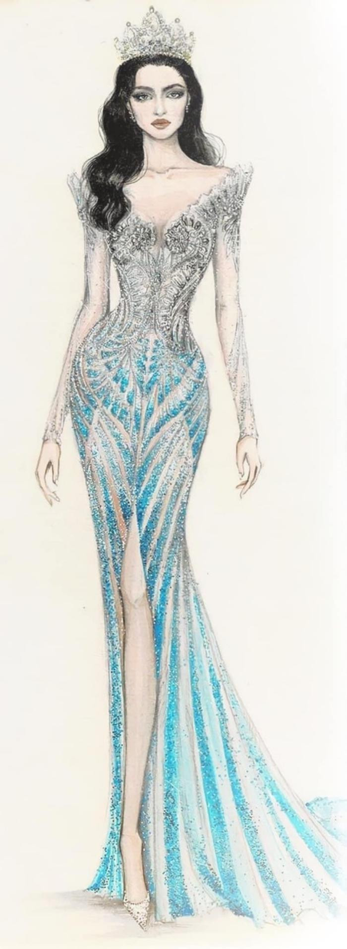Tuy không nói rõ đây là thiết kế dành cho nàng hậu nào, nhưng nhìn hình ảnh được vẽ ra, không ít netizen đã đoán rằng đây sẽ là thiết kế váy dạ hội dành cho Hoa hậu Đỗ Thị Hà.