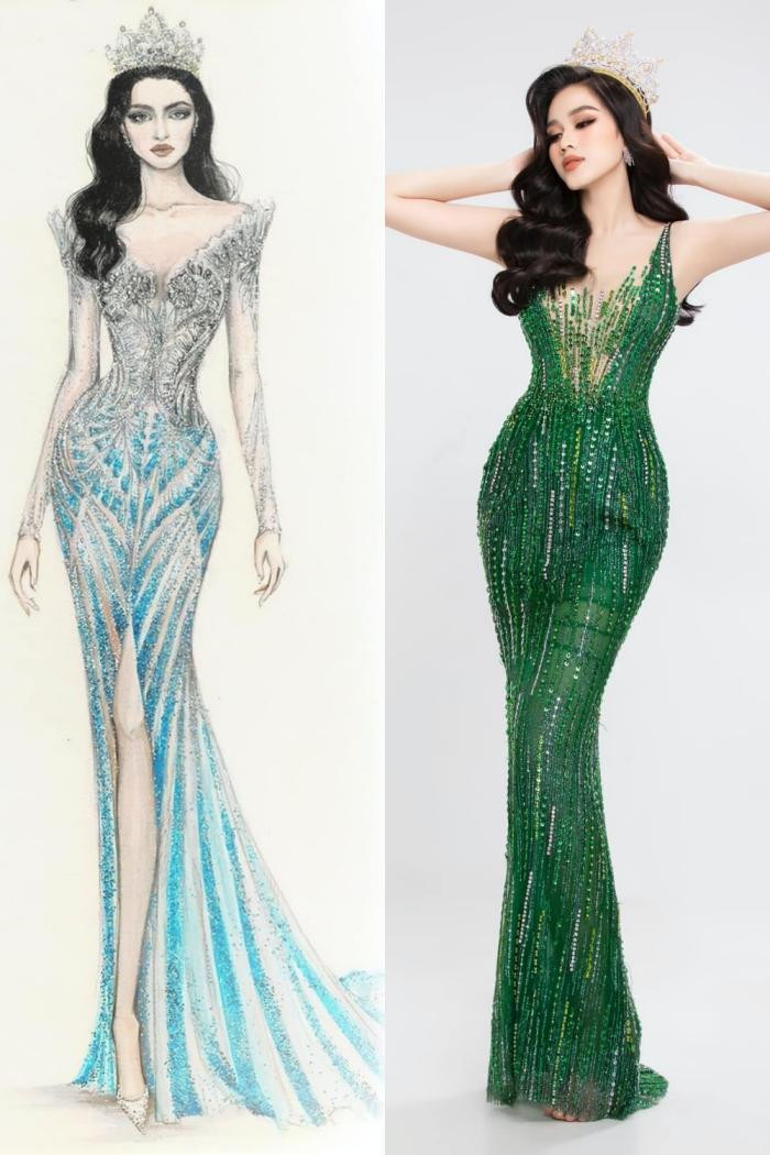 Chưa biết mẫu váy khi được hiện thực hóa sẽ ra sao, nhưng nhiều ý kiến cho rằng thay vì màu xanh hơi nhợt nhạt, nhà thiết kế nên chọn màu đỏ - "sắc màu may mắn" của Hoa hậu Đỗ Thị Hà thì chiếc váy mặc lên sẽ trông ấn tượng hơn.