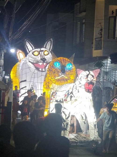 Từ hoạt động này mà trên mạng xã hội xuất hiện nhiều hình ảnh người dân chụp lại những mô hình đèn Trung Thu linh vật mèo, với kích cỡ khổng lồ được diễu hành khắp phố.