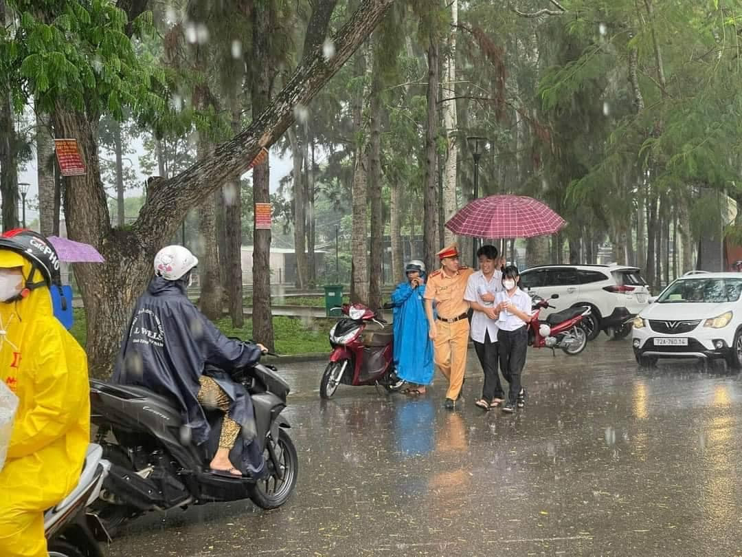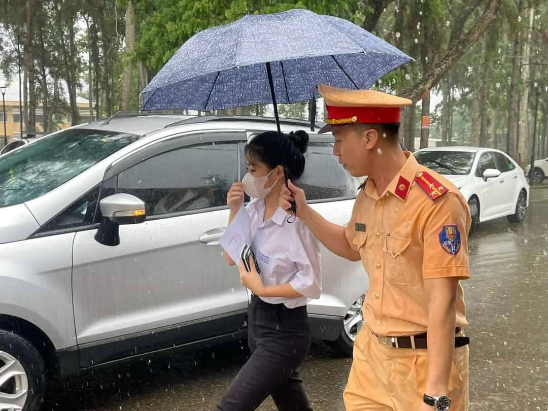 Tại khu vực miền Nam, trong buổi chiều thi môn Toán, nhiều khu vực trong đó có TP.HCM, Bà Rịa - Vũng Tàu đã xuất hiện cơn mưa to. Nhiều diễn đàn mạng xã hội đã đăng tải hình ảnh các chiến sĩ công an vừa điều phối giao thông, vừa hỗ trợ che dù cho các sĩ tử.