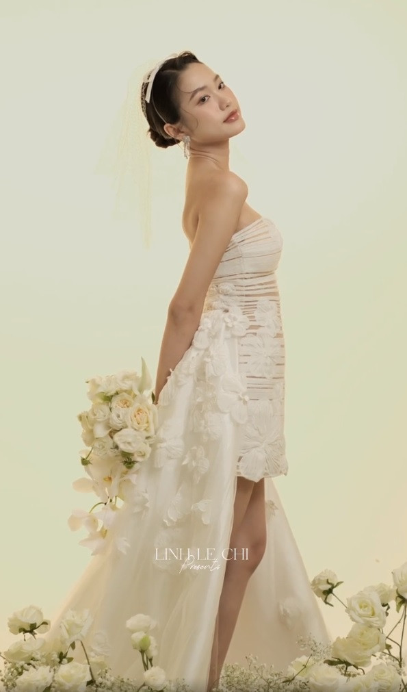 Doãn Hải My sở hữu vẻ đẹp nhẹ nhàng, nữ tính nên những mẫu váy đính hoa tinh xảo càng tôn lên đường nét ngọt ngào của cô, giúp "cô dâu tháng 11" thêm xinh đẹp trong đám cưới.