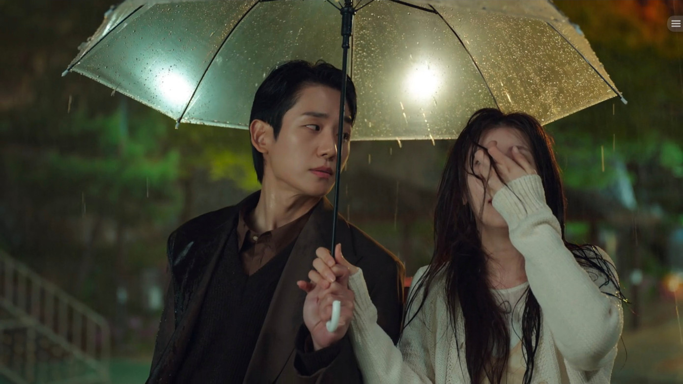 Seok Ryu chạy tới công viên gần nhà để giải khuây. Trùng hợp, Choi Seung Hyo cũng cảm thấy có điều bất ổn, anh đi theo cô. Anh nhìn ra khuôn mặt cố kể chuyện cũ để gượng cười của cô. Anh quăng chiếc ô xuống cũng là lúc Bae Seok Ryu vỡ òa bật khóc. Luôn hơn thua nhau, chí chóe như chó với mèo nhưng Choi Seung Hyo cũng là người tinh tế và hiểu cô bạn này nhất. Anh bỏ ô xuống, để Bae Seok Ryu mặc sức khóc trong mưa, để ngoài anh ra không ai biết nước mắt cô đang hòa trong mưa, cũng là một cách giữ sự tự tôn cho cô.