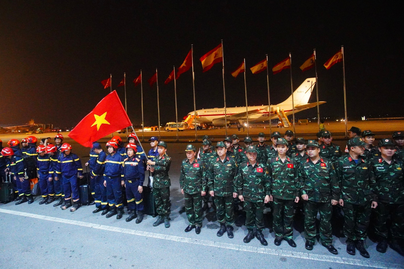 | Tối 8/4, chuyến bay cất cánh từ Yangon (Myanmar) đã đưa lực lượng cứu hộ, cứu nạn của Quân đội và Công an tham gia khắc phục hậu quả động đất tại Myanmar trở về nước, hạ cánh an toàn tại sân bay quốc tế Nội Bài (Hà Nội). |