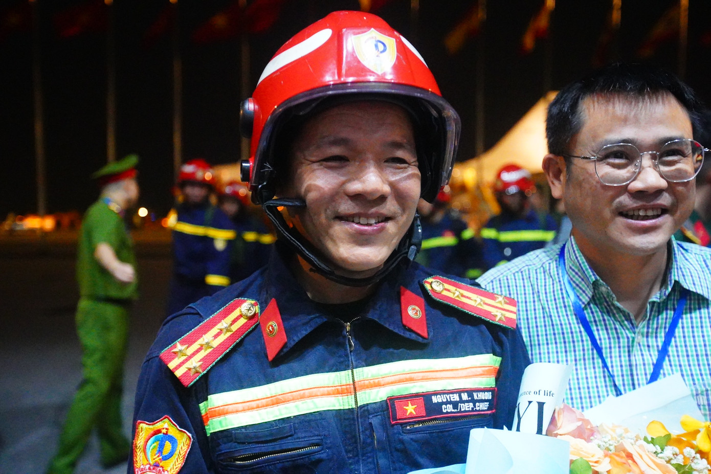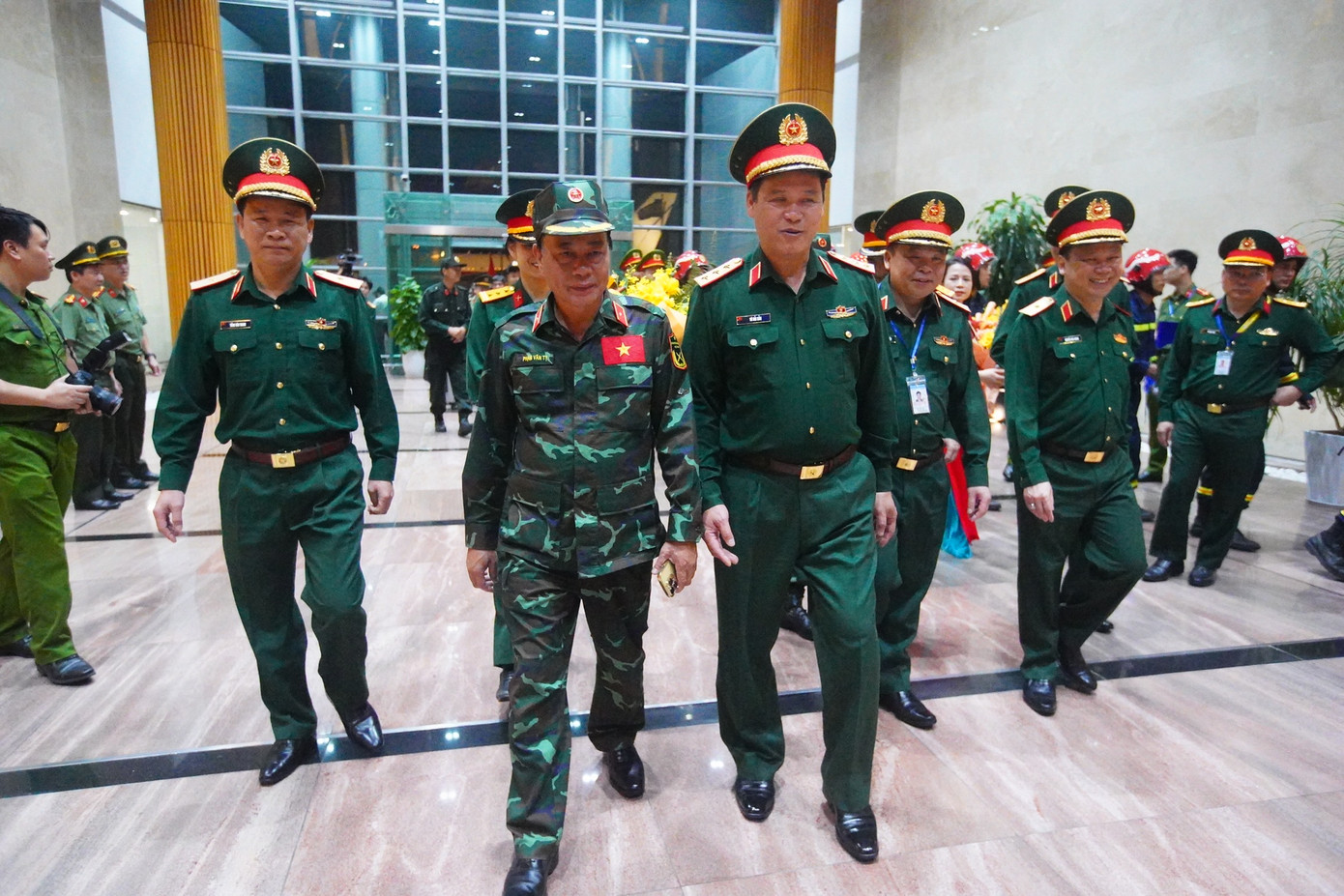 | Đón lực lượng cứu hộ, cứu nạn tại sân bay quốc tế Nội Bài có Thượng tướng Vũ Hải Sản, Ủy viên Trung ương Đảng, Thứ trưởng Bộ Quốc phòng; Trung tướng Lê Văn Tuyến, Thứ trưởng Bộ Công an cùng đại diện lãnh đạo một số cơ quan, đơn vị. |
