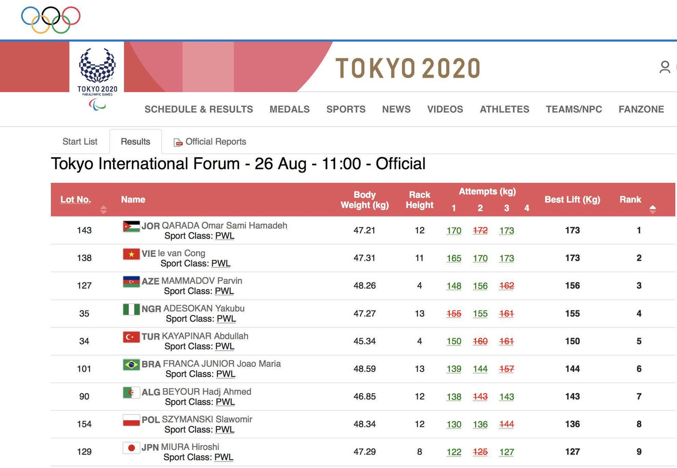 Cuộc tranh tấm HCV hạng cân 49kg nam tại Paralympic Tokyo 2020 sáng nay diễn ra giữa Văn Công và Omar Qarada (Jordan). Văn Công chinh phục thành công ở cả 3 lần thực hiện, ở các mức tạ 165kg, 170kg và 173. Trong khi đó, Omar Qarada thành công ở mức tạ 170 kg ngay lần đầu tiên, nhưng thất bại ở mức 172kg ở lần tiếp theo. Ở lần nâng quyết định, Qarada đã chinh phục được mức tạ 173kg.