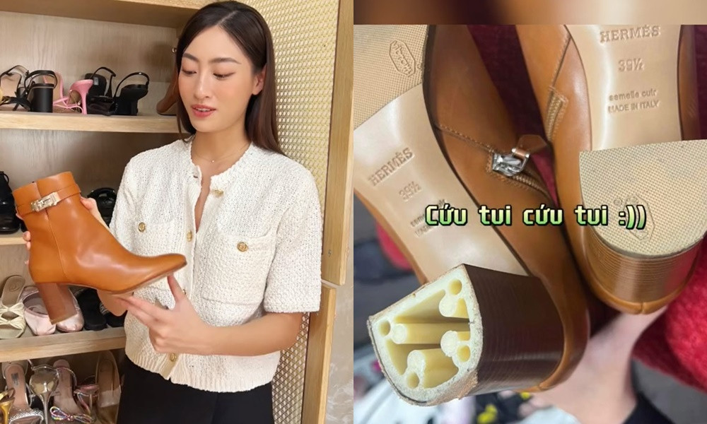 Tất nhiên Lương Thùy Linh sở hữu rất nhiều đôi giày hàng hiệu đắt giá, trong đó có một đôi bốt màu da bò của Hermès trị giá 48 triệu mà “dì Dung” mua tặng cô. Lương Thùy Linh lần đầu tiên diện nó trong một sự kiện ở Thái Nguyên có rất đông người tham dự và chẳng ngờ sau ngày hôm đó, một bên đế giày bị rơi ra từ lúc nào không rõ.