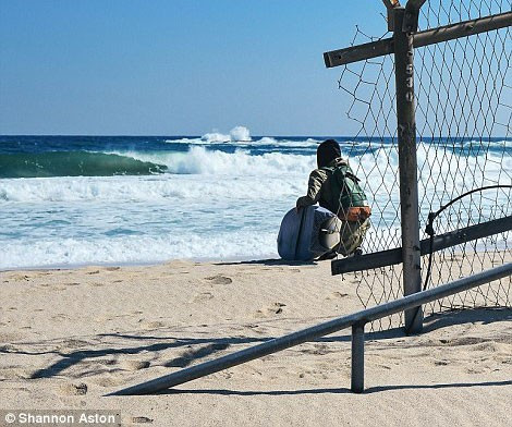 Một khách du lịch ngắm sóng biển bên cạnh hàng rào dây thép gai. DMZ giữa Hàn Quốc và Triều Tiên luôn có binh lính canh gác cẩn mật để đề phòng đối phương tấn công.