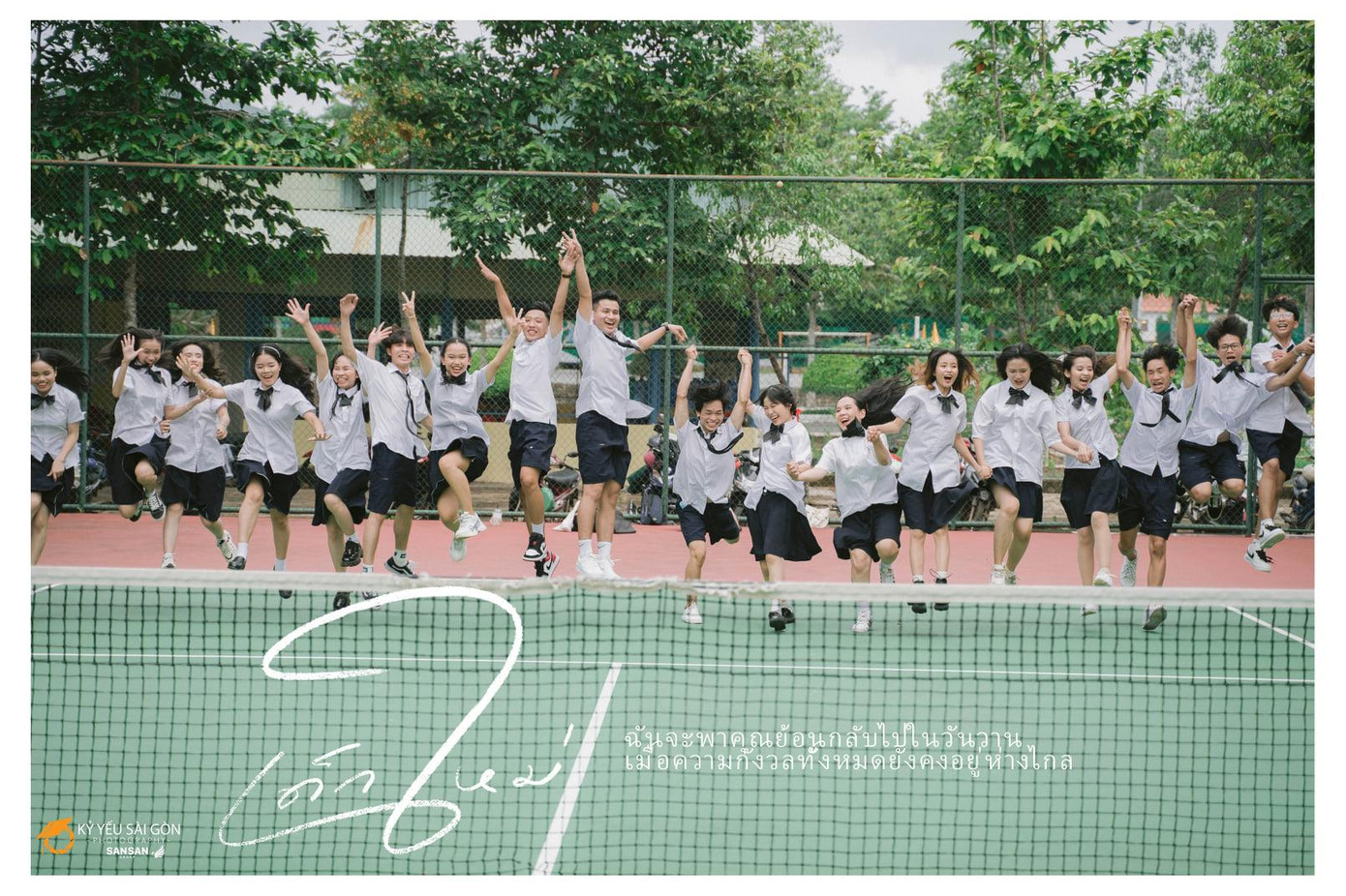 Năm nay, thay vì những bộ ảnh khiến dân tình trầm trồ bởi kinh phí “khủng” hay concept cổ phục siêu hot trong năm ngoái, “đường đua kỷ yếu” của teen 2K4 chứng kiến sự trở lại của những concept thanh xuân vườn trường quen thuộc. Có thể kể đến những bộ kỷ yếu với “trang phục quốc dân” là áo dài trắng, đồng phục thể dục, áo lớp… hay mới lạ hơn một chút là concept học sinh Thái Lan với trang phục giày đen, tất cao cổ màu trắng, váy dài ngang gối cho nữ và quần soóc cho nam. Khung cảnh và cách tạo dáng của những bộ kỷ yếu phong cách này cũng vô cùng quen thuộc và đơn giản.