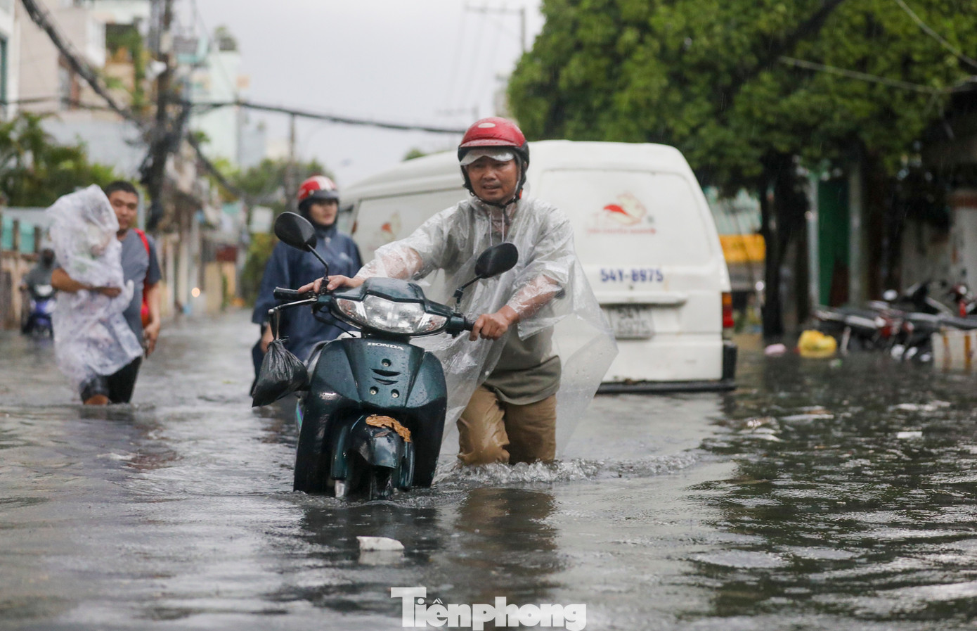 Ghi nhận tại khu vực đường Dương Văn Cam (phường Linh Tây, TP Thủ Đức), nước ngập sâu khiến giao thông qua khu vực này bị tê liệt hoàn toàn. Để ngăn nước, nhiều hộ dân phải nâng nền nhà lên cao hơn mực nước hoặc lắp đặt những tấm chắn để ngăn nước cùng rác thải tràn vào nhà.
