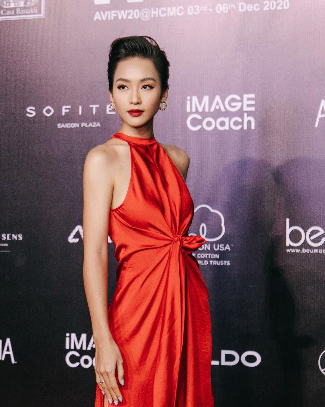 Tóc ngắn cũng có thể tạo được nhiều kiểu không thua gì tóc dài. Mái tóc ngắn của Khả Ngân không phải lúc nào cũng chỉ có một kiểu, ngay cả khi vén tóc qua một bên tai, Khả Ngân cũng vén mỗi lần một khác. Lúc thì cô chọn làm xoăn nhẹ, không cài phụ kiện cho tóc mà chỉ đeo khuyên tai size lớn bắt mắt.