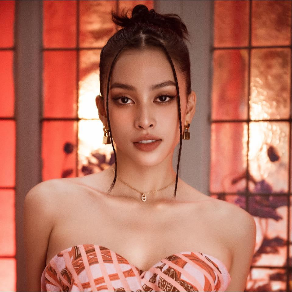 Phần tóc mai được khen là giúp Thùy Tiên dịu dàng nữ tính hơn, tạo cảm giác gương mặt thon gọn đi đáng kể. Có lẽ vì thế mà cựu Hoa hậu Hòa bình Quốc tế thường xuyên thả tóc mai.