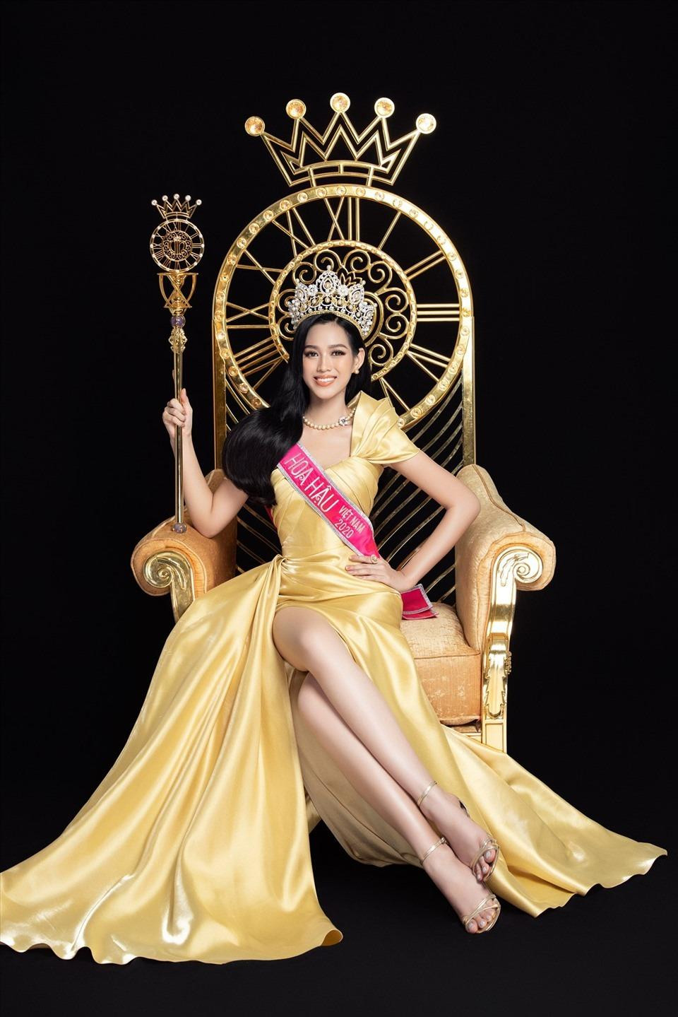Có thể thấy màu vàng rất có duyên với Đỗ Thị Hà từ khi cô trở thành Hoa hậu Việt Nam 2020. Trong bộ ảnh chụp sau khi đăng quang, nàng hậu cũng được ê-kíp chọn cho một bộ váy dài màu vàng ánh kim quyền lực và sang chảnh.