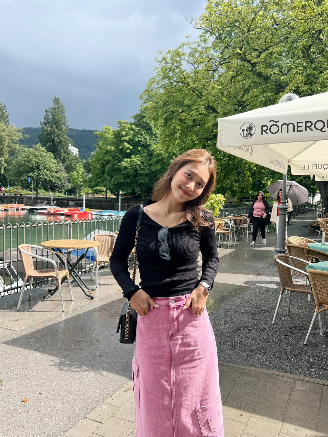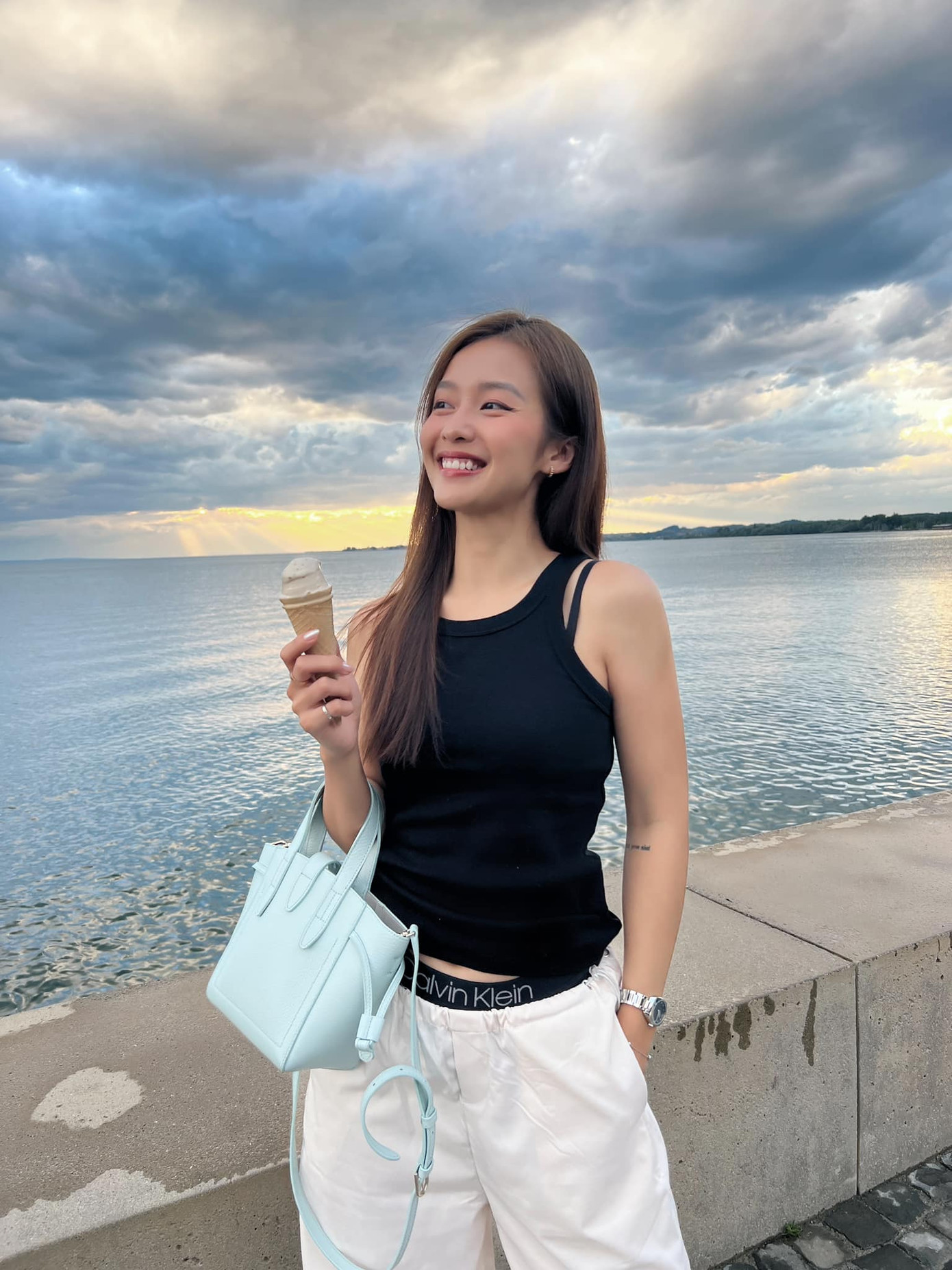 Chưa kể gu thời trang của Khả Ngân trong chuyến du lịch này cũng rất ấn tượng. Nữ diễn viên chọn toàn đồ đơn sắc với phong cách trẻ trung, năng động mà không kém phần thời thượng. Cô mang theo bộ sưu tập áo crop-top, áo tank-top với màu sắc cơ bản như trắng, đen, be rất dễ phối màu.