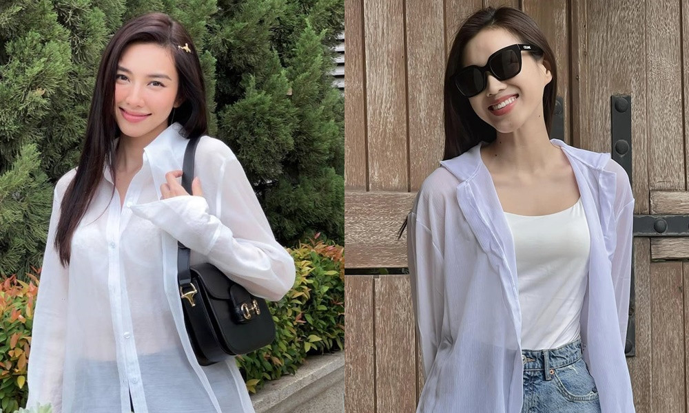 Mới đây, cả hai nàng hậu Thùy Tiên, Đỗ Thị Hà cùng lăng xê một kiểu phối đồ trẻ trung, phóng khoáng và rất hợp với mùa Hè. Đó là diện sơ mi trắng xuyên thấu cùng với quần soóc siêu ngắn khoe đôi chân dài.
