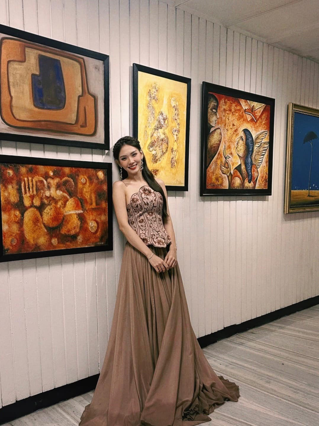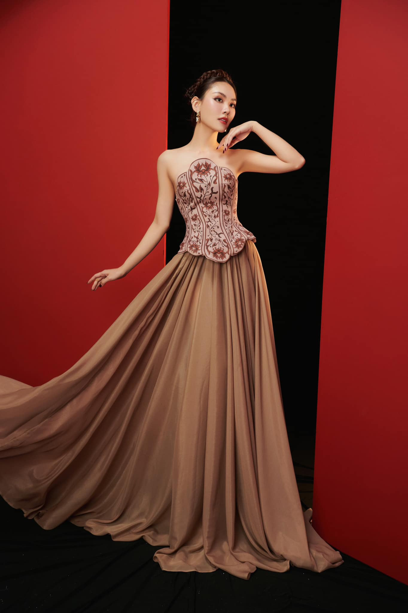 Chiếc váy có tên Hoa Nâu được Hoa hậu Mai Phương mặc trong Lễ Khai mạc Miss World. Thiết kế được lấy cảm hứng từ gốm hoa nâu, dòng gốm xưa mang đậm giá trị đặc trưng trên bản đồ gốm Việt.