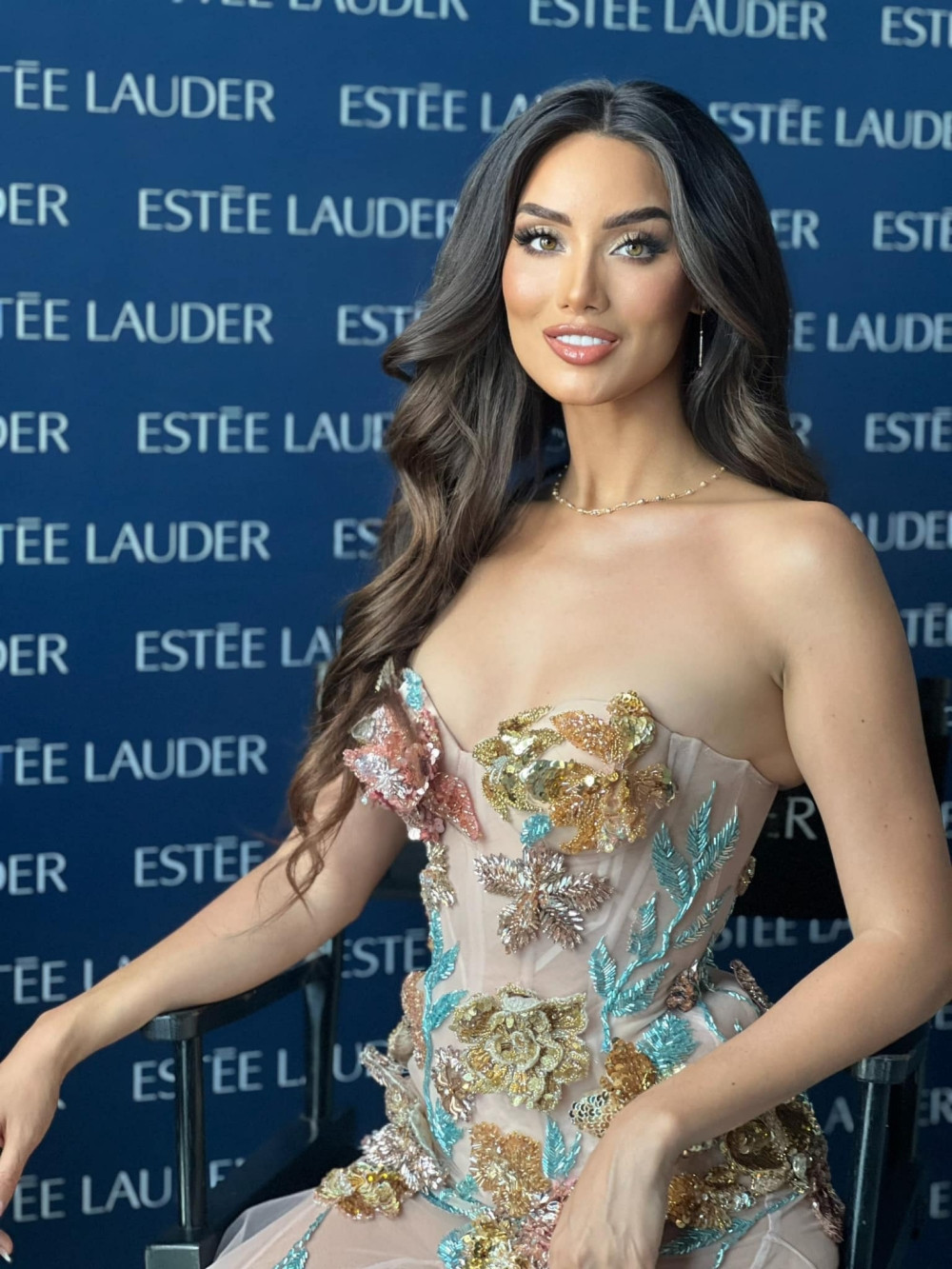 Lydie Vũ trong buổi photoshoot chính thức với Miss Supranational 2024.