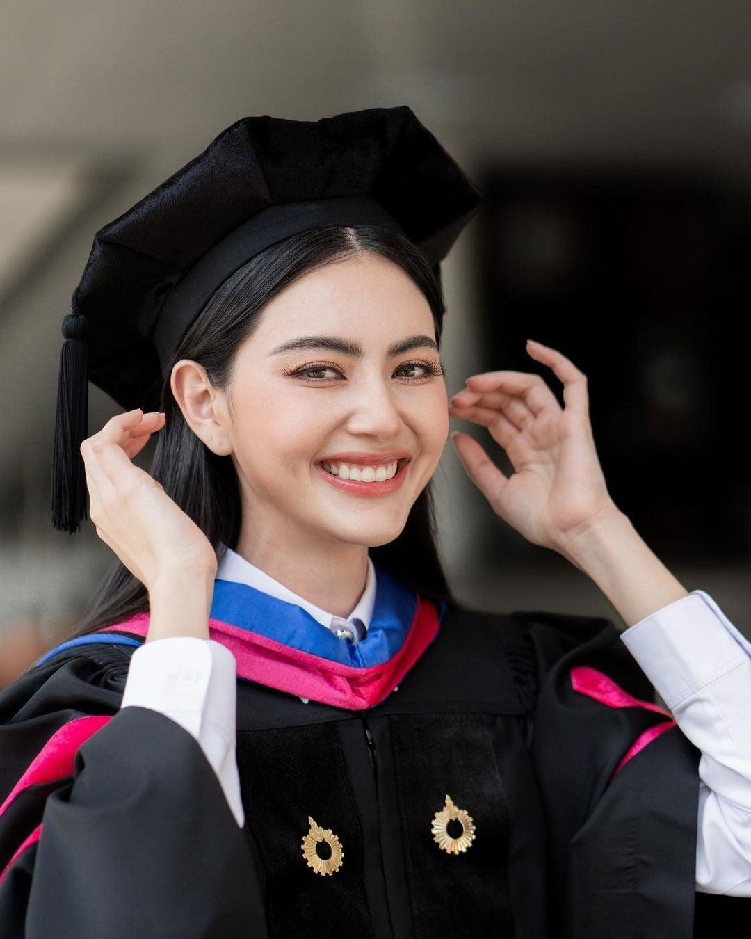 | Vừa qua, Mai Davika thu hút sự chú ý khi nhận bằng thạc sĩ ngành Nghệ thuật Truyền thông, Đại học Rangsit. |