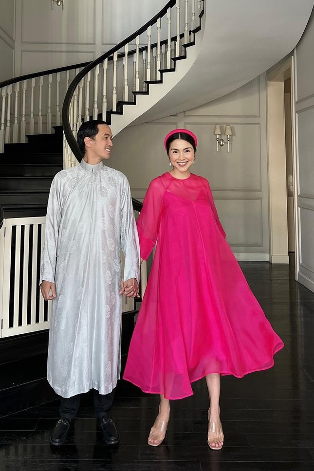 Ngay sau đó, netizen đã nhận ra bộ váy mà Doãn Hải My mặc rất quen, được Tăng Thanh Hà yêu thích. "Ngọc nữ màn ảnh Việt" sắm hẳn hai bộ có màu sắc khác nhau của thiết kế này để diện trong dịp Tết Nguyên đán năm 2022. Khi ấy, nữ diễn viên mới sinh con thứ ba được vài tháng nên cũng chọn cách giấu vóc dáng trong hai bộ váy màu đỏ và vàng.