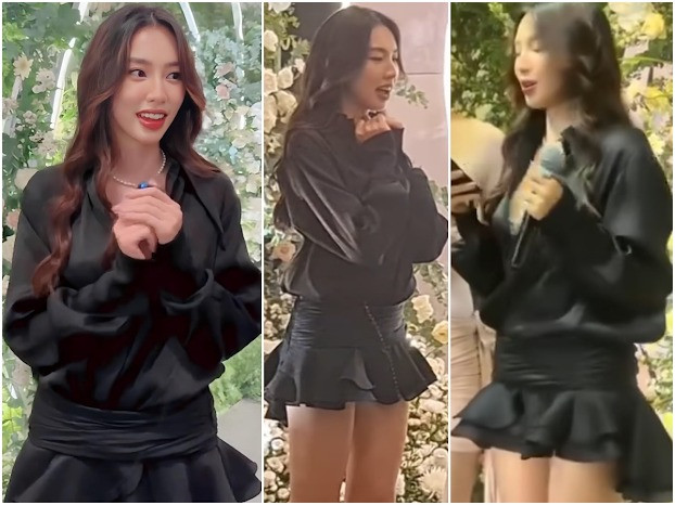 Trong khi đa số người đẹp Việt đều chọn mẫu màu trắng như Lisa mặc, hoặc màu xám nhạt thì Thùy Tiên lại độc đáo hơn khi mặc váy màu đen. Nàng hậu đã diện nó khi dự đám cưới Á hậu Phương Anh và được khen là nhìn rất xinh đẹp, ấn tượng mà vẫn lịch sự.