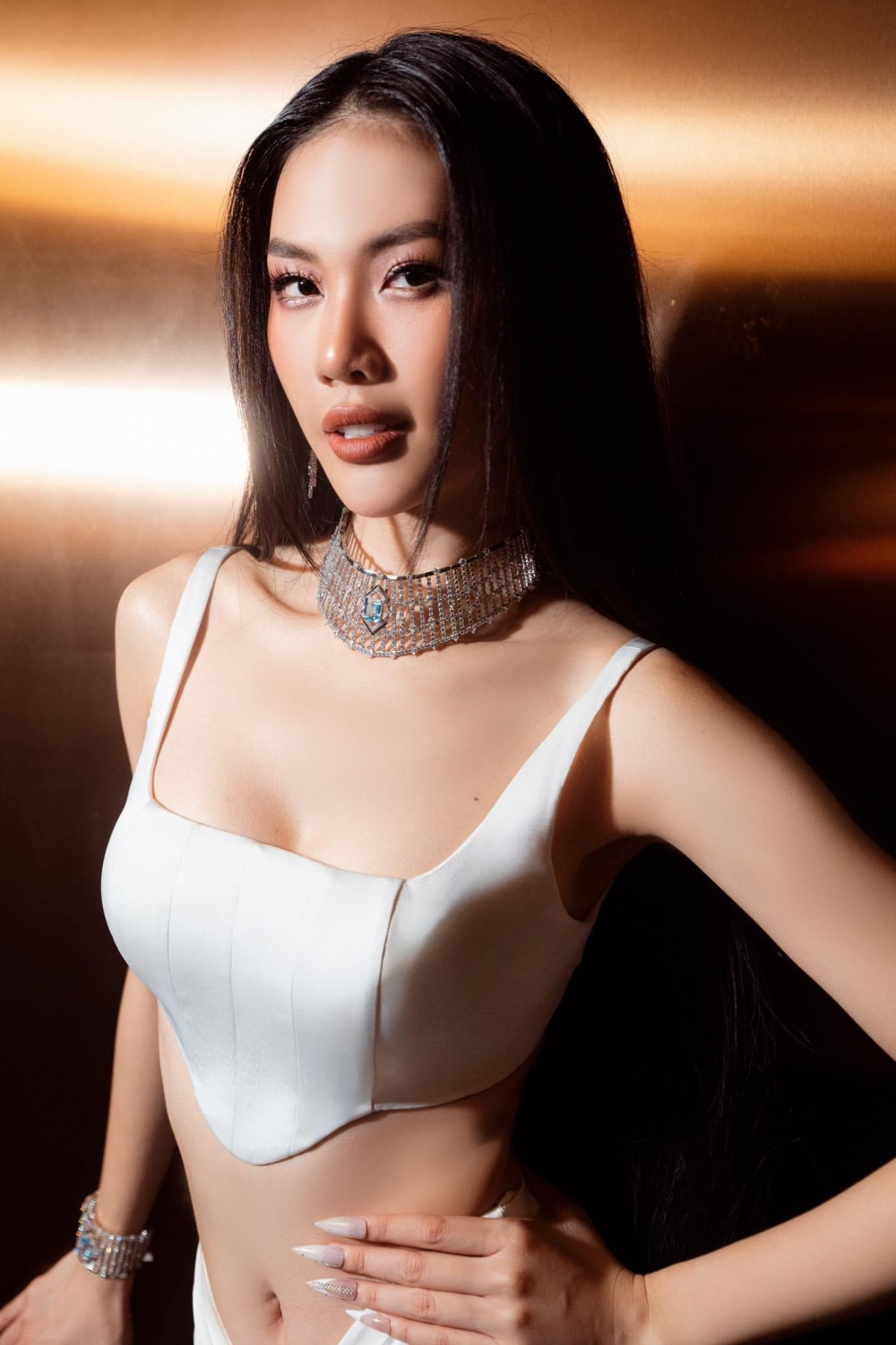 Tác giả của chiếc váy mang tên Goddess mà Mai Davika mặc lần này là nhà thiết kế Trà Linh. Trang phục nằm trong bộ sưu tập mang tên Aluminium.