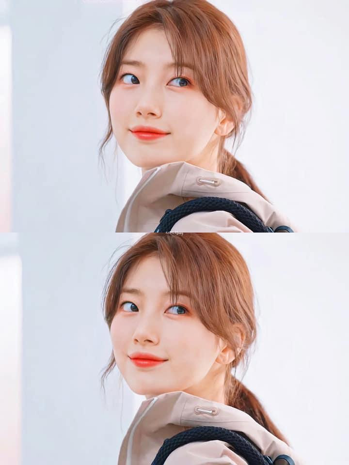 Suzy rất chăm để mái ngang hoặc mái thưa. Nhưng trong những lần hiếm hoi để mái rèm cửa, Suzy cũng đốn tim khán giả vì vẻ ngọt ngào, dịu dàng.