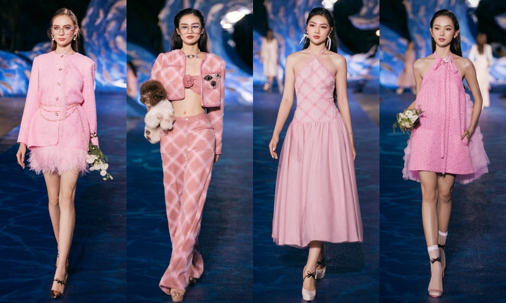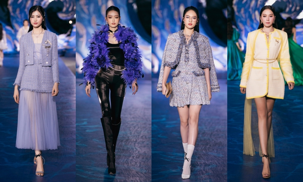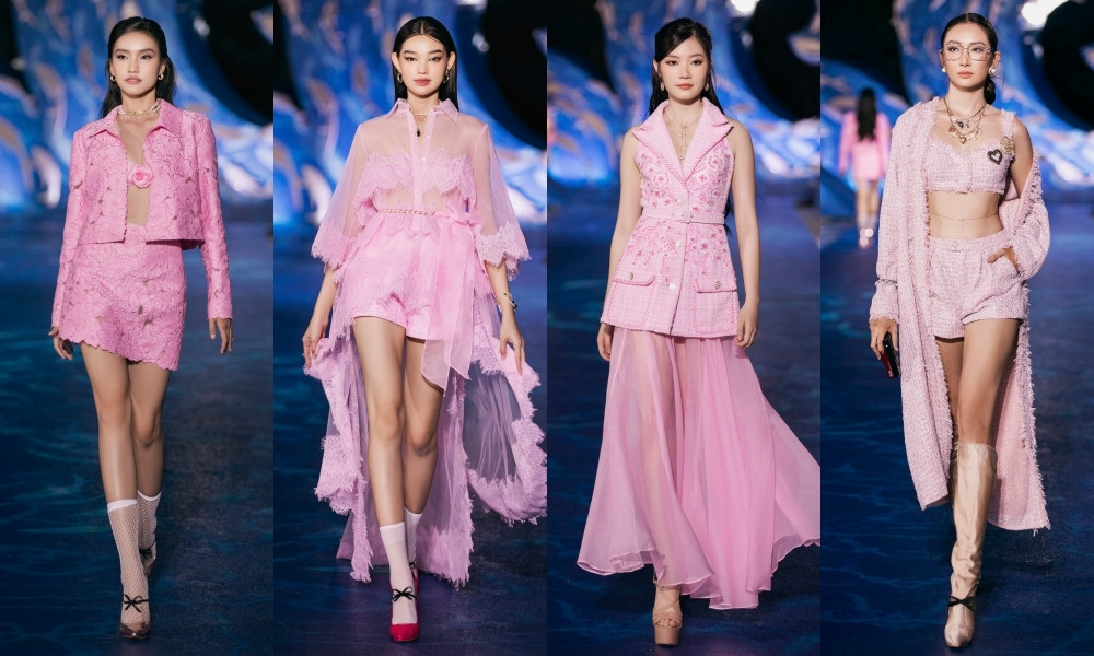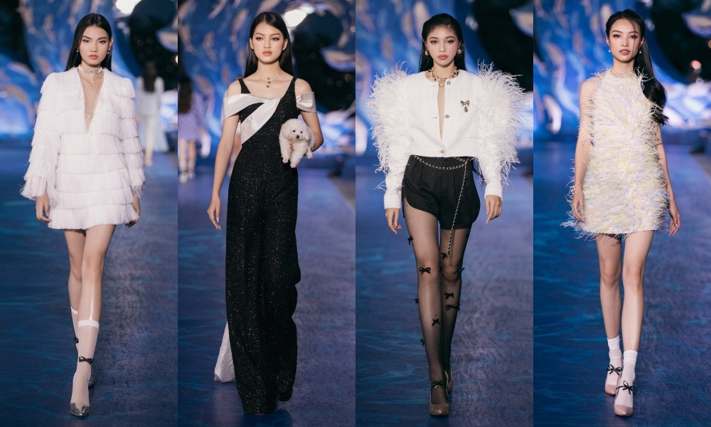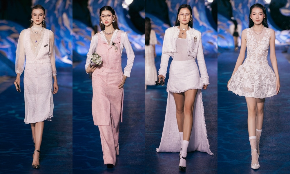 Trong BST cũng xuất hiện những xu hướng thời trang đang thịnh hành như bralette không dây đi kèm set áo khoác và quần hoặc váy đồng bộ; phụ kiện body chain giúp tôn lên các đường chiết eo của trang phục; đính kết hoa vải…