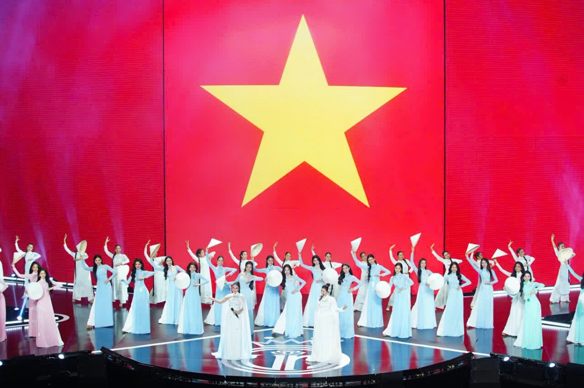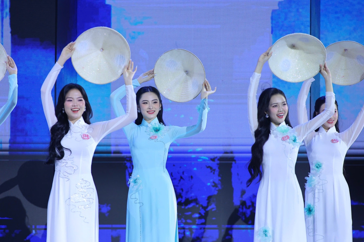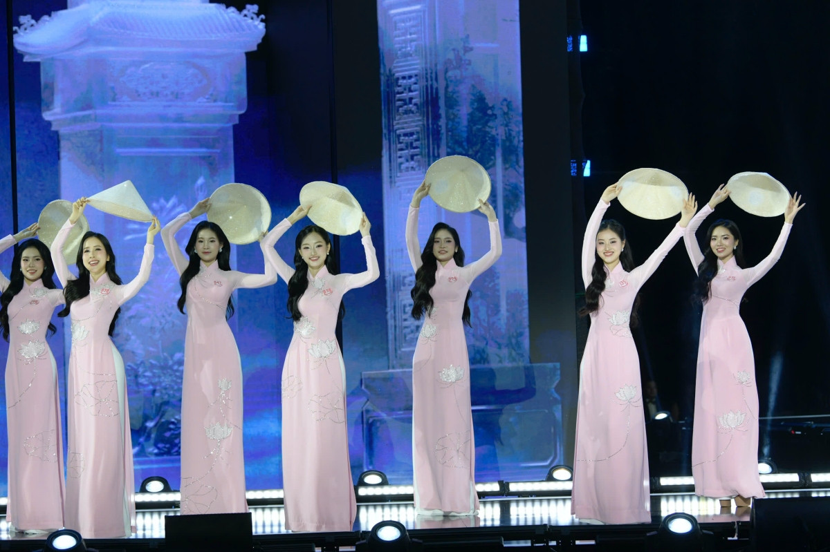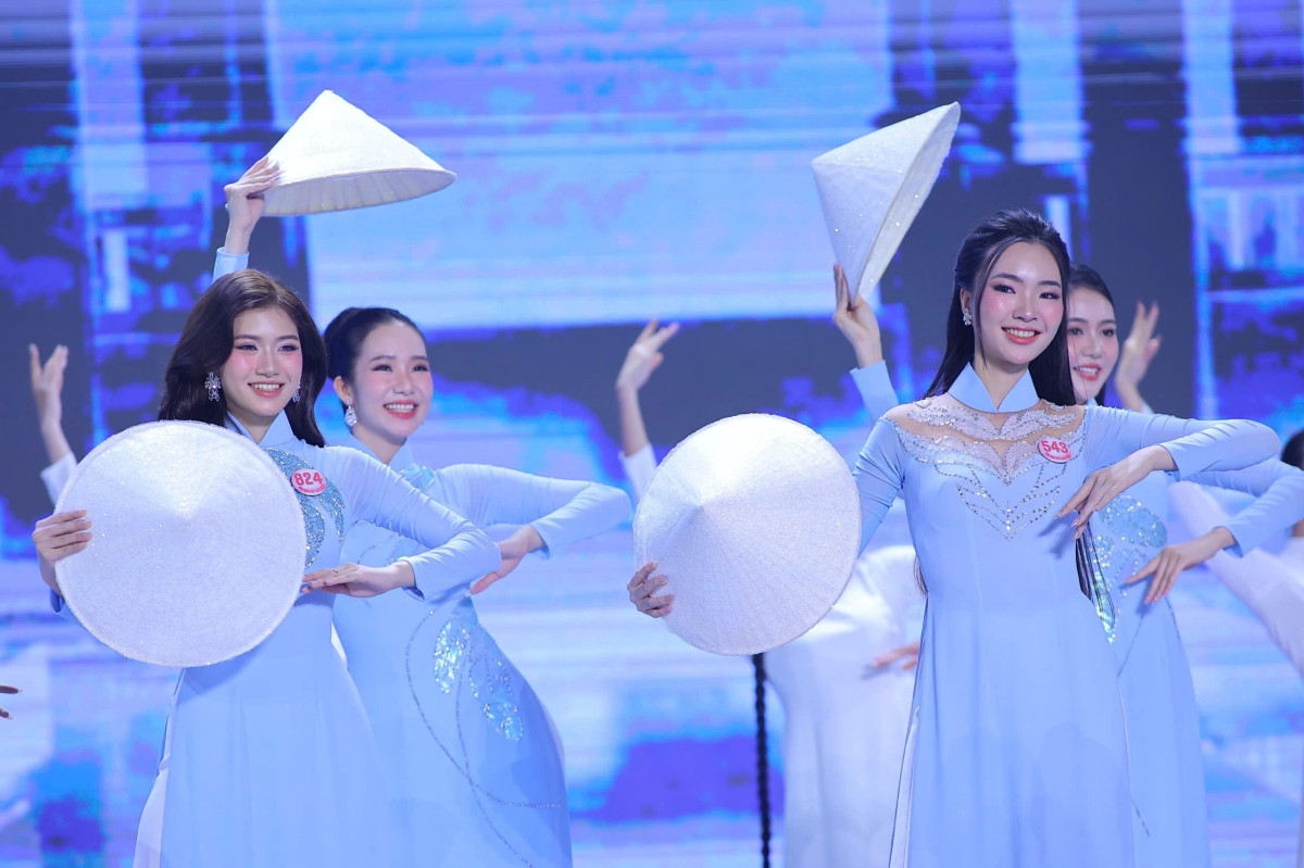 Nhan sắc rạng rỡ, xinh đẹp tự nhiên của Top 41 thí sinh Hoa hậu Việt Nam 2024 trong màn trình diễn áo dài, trên nền ca khúc Việt Nam Hào Quang Rực Sáng, với giọng ca của hai nữ ca sĩ Satila Hồng Vịnh và Lưu Hiền Trinh.