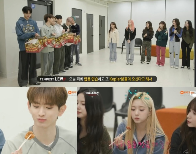 Trong video hậu trường ghi lại cảnh Kep1er đến phòng tập của TEMPEST luyện tập, 2 nhóm nhạc thoải mái nói chuyện và cùng ăn uống khiến nhiều khán giả thích thú.