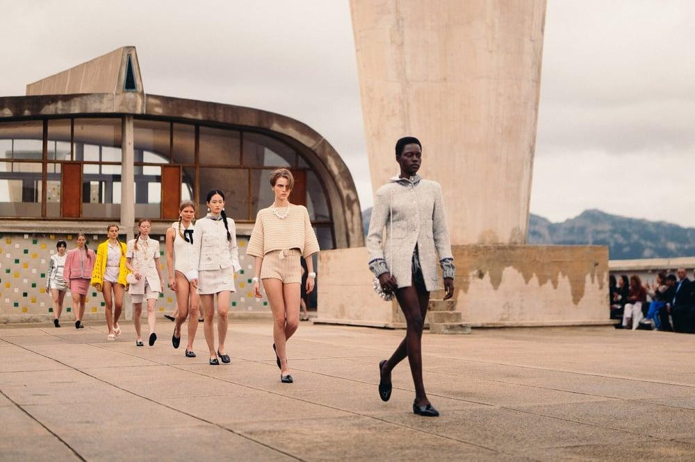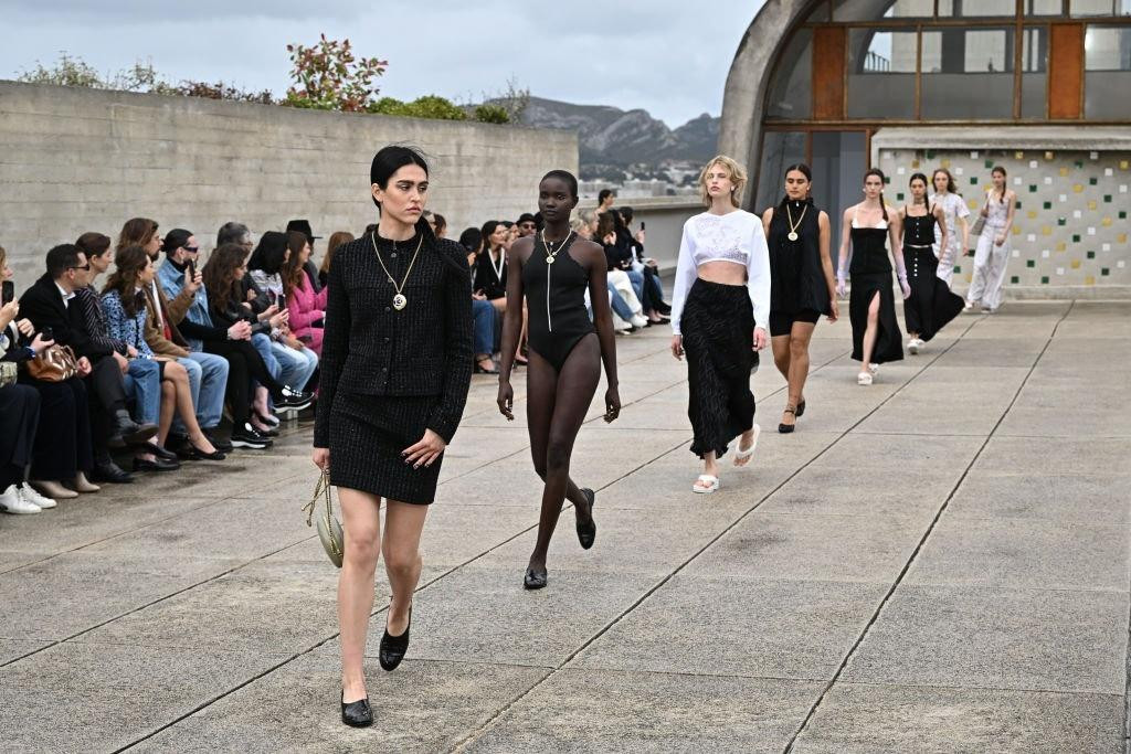 Cập bến cảng của Marseille, Chanel đã tổ chức show diễn cruise mới nhất của mình trên sân thượng của tòa nhà La Cité Radieuse, được xây dựng từ năm 1947. Bảng màu phấn, màu xám bê tông và họa tiết dạng lưới của kiến trúc tòa nhà hòa vào những thước vải tuýt (tweed) tinh xảo. Những mẫu thiết kế có vẻ giản dị hơn những gì được thấy ở Paris, nhưng nhẹ nhàng và thơ mộng đúng kiểu vùng biển nước Pháp.