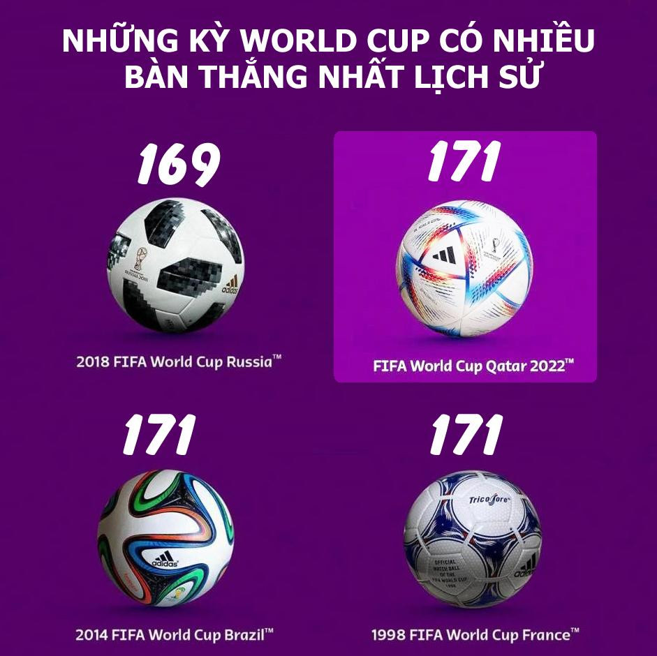 Cụ thể, sau 6 bàn thắng xuất hiện tại trận chung kết, World Cup 2022 đã cán mốc 171 bàn thắng, ngang bằng tổng số lần lưới rung tại 2 kỳ Cúp thế giới 1998 và 2014.