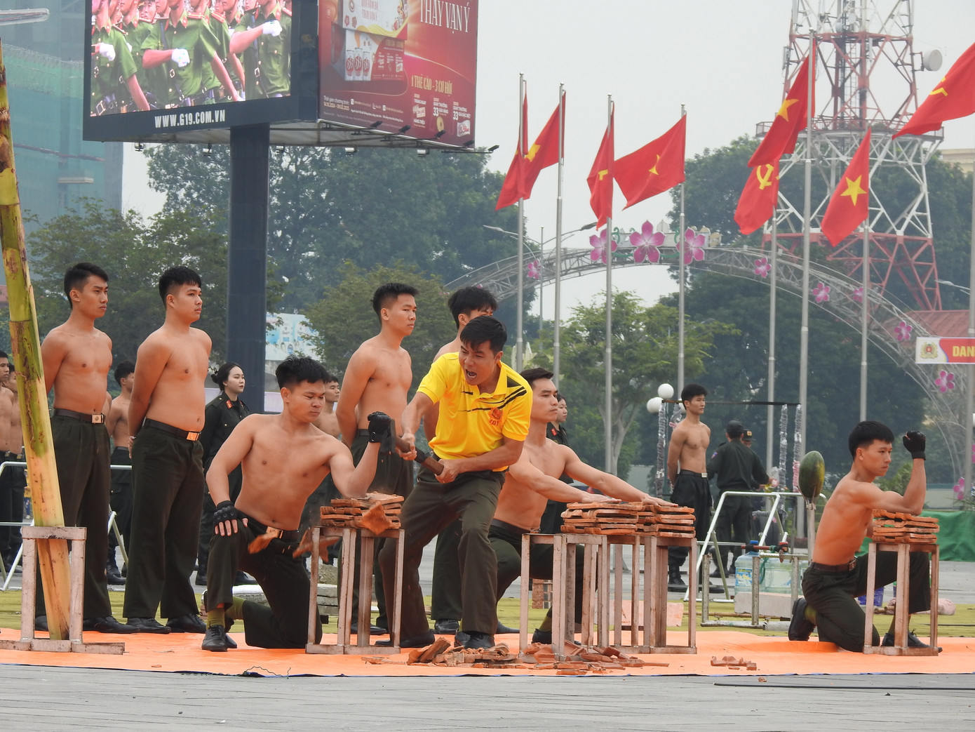 | Phần trình diễn xe ô tô đi qua 12 chiến sĩ công an. |