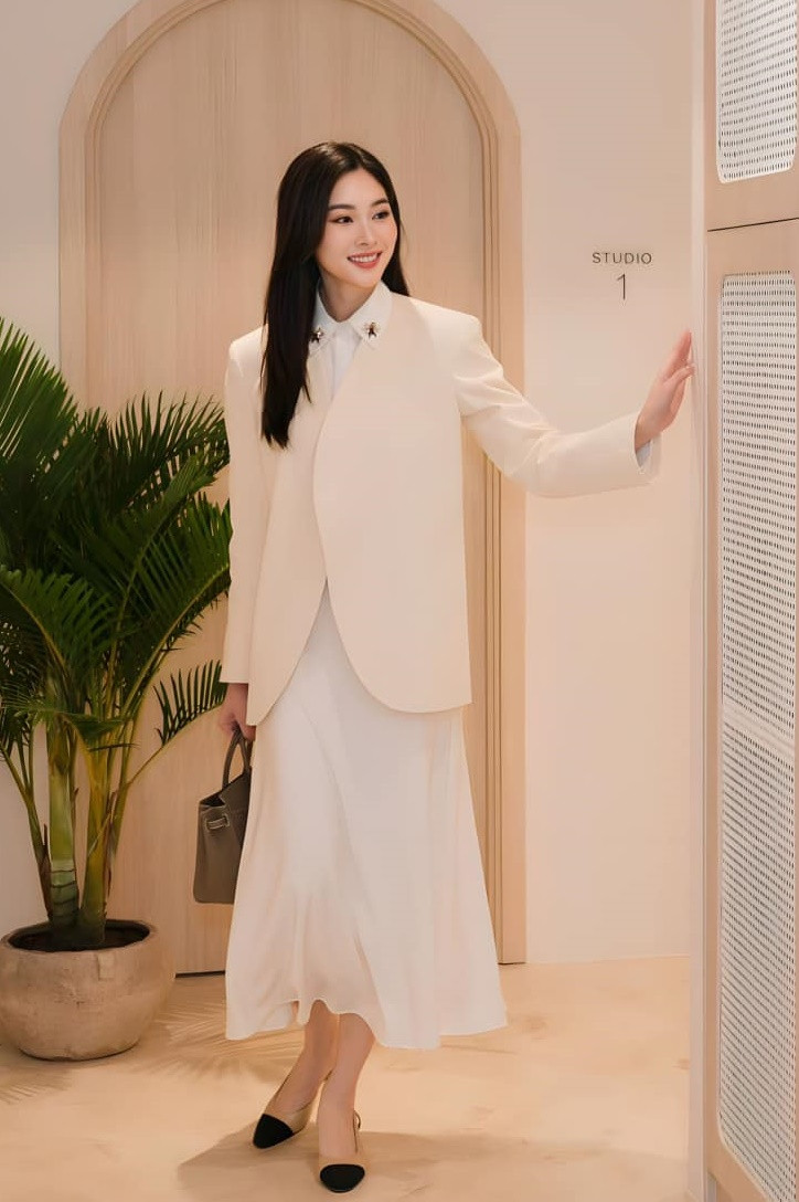 Nhưng Đỗ Thị Hà mới là nàng hậu mê mẩn mẫu blazer trắng này nhất, khi nàng hậu diện liên tục trong vài tháng gần đây. Hoa hậu Việt Nam 2020 thường kết hợp blazer với váy liền màu đen, tạo thành combo đầy cổ điển mà vẫn đẹp mắt.