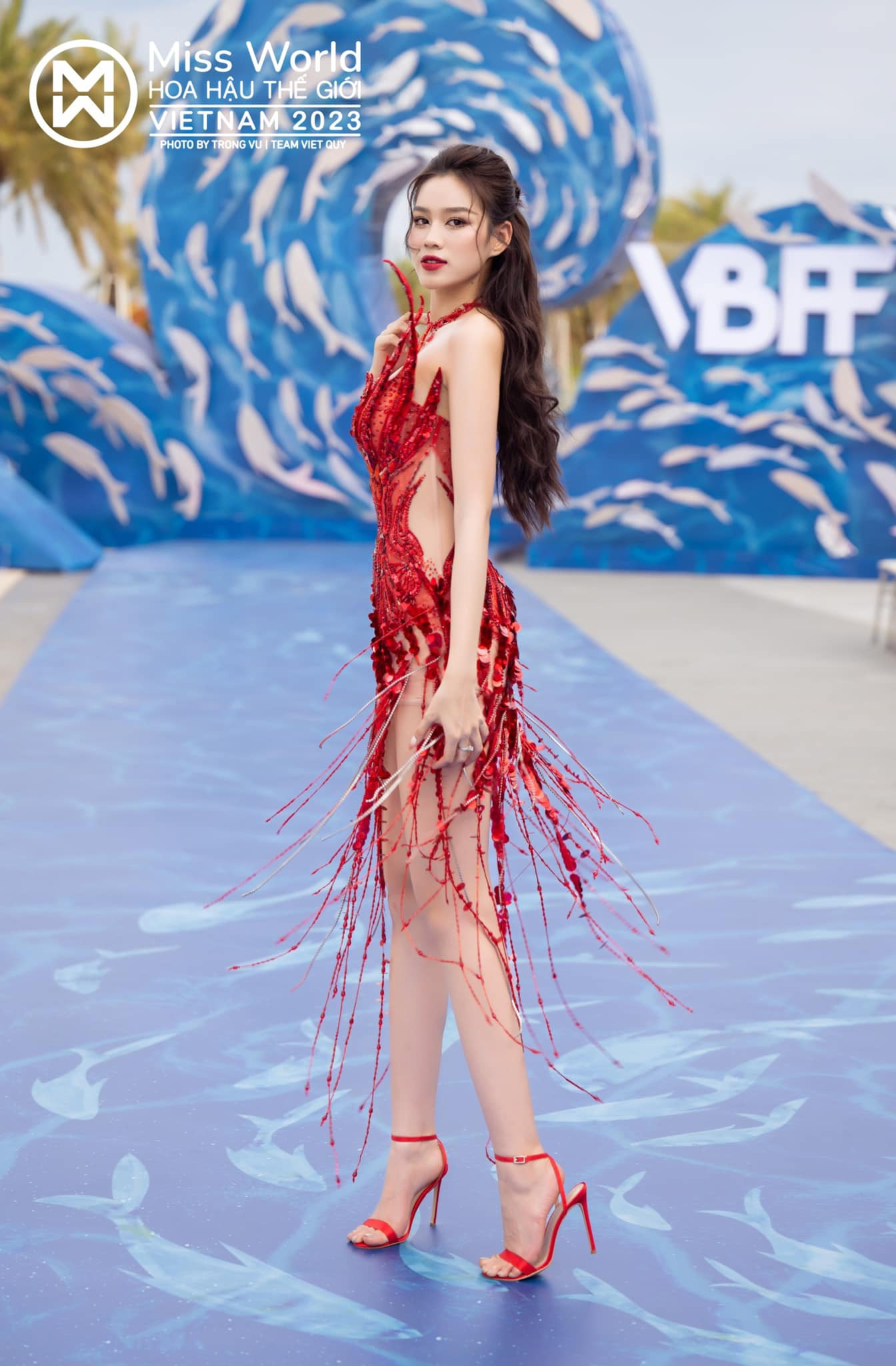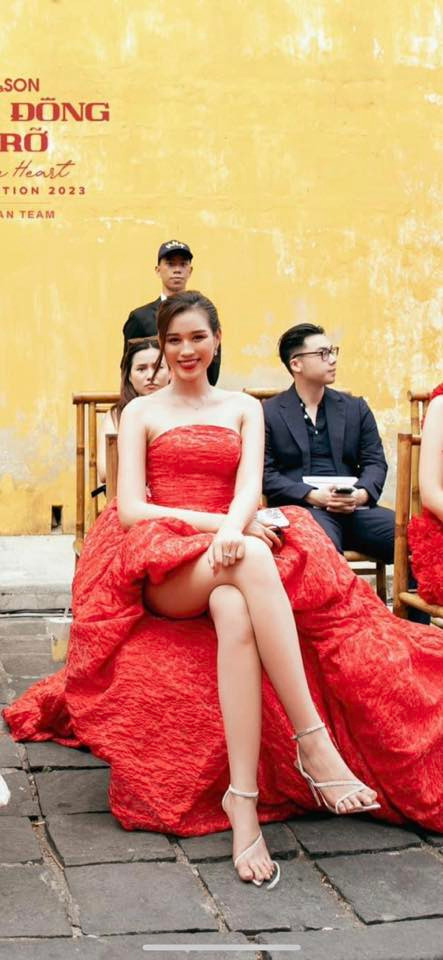 Có thể thấy nàng hậu diện mẫu sandal này liên tục, từ các show diễn thời trang tới các sự kiện giải trí. Như khi làm khách mời đặc biệt trong một show thời trang ở Hội An, Đỗ Thị Hà cũng kết hợp sandal ánh bạc với bộ váy đỏ rực rỡ.
